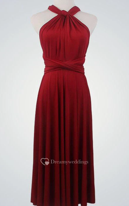 High Neck Sleeveless A-line Pleated Jersey Knee Length Dress With Bandage