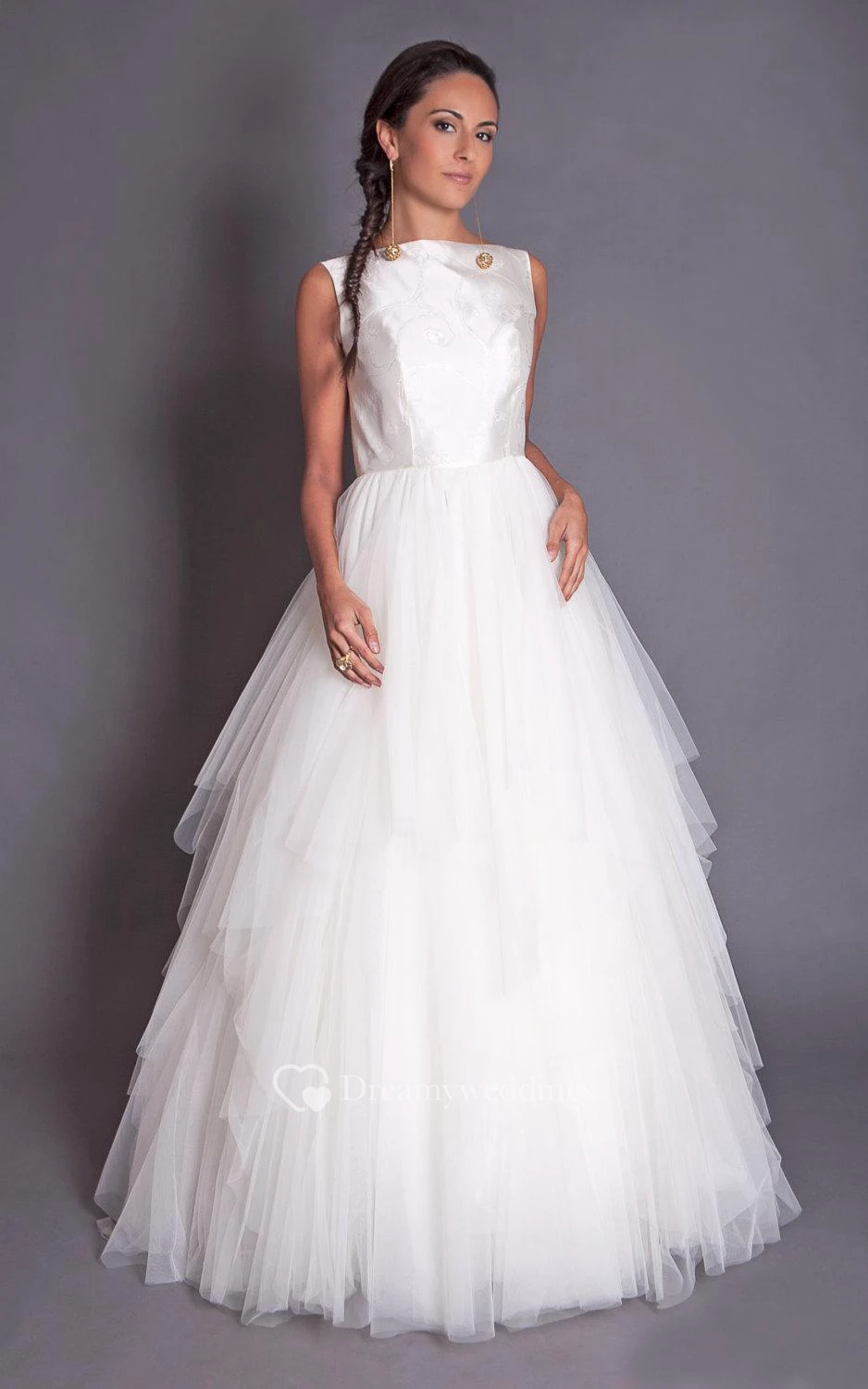 High Neck Sleeveless A-Line Tulle Dress With Tiers
