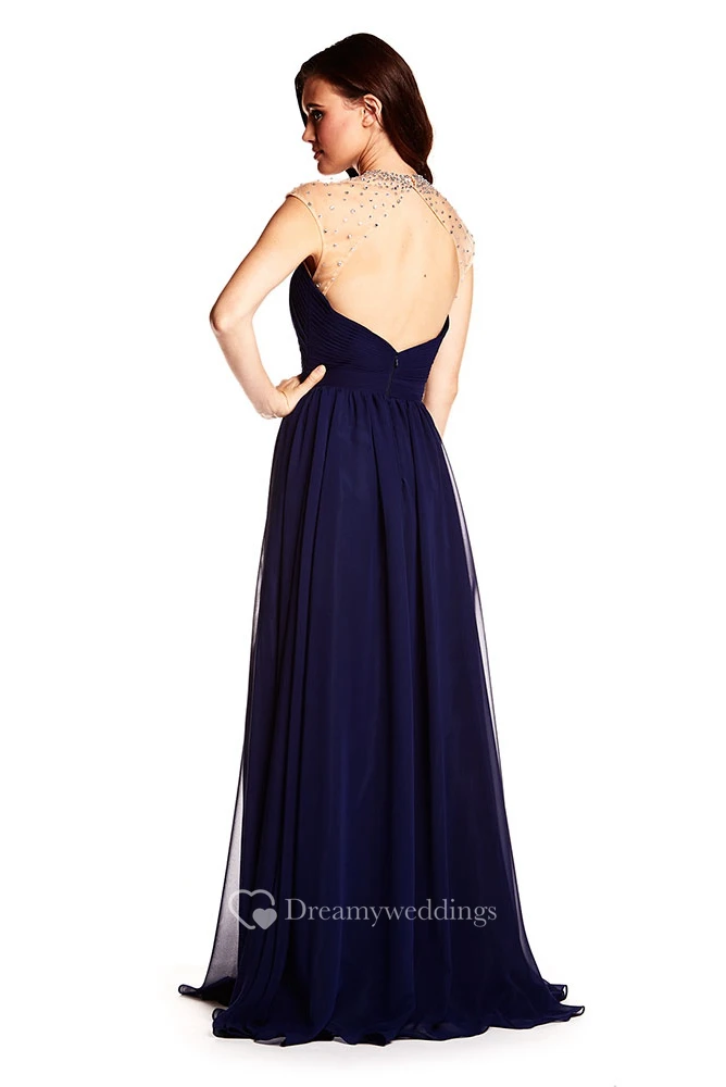High Neck Sleeveless Beaded Chiffon Prom Dress With Keyhole