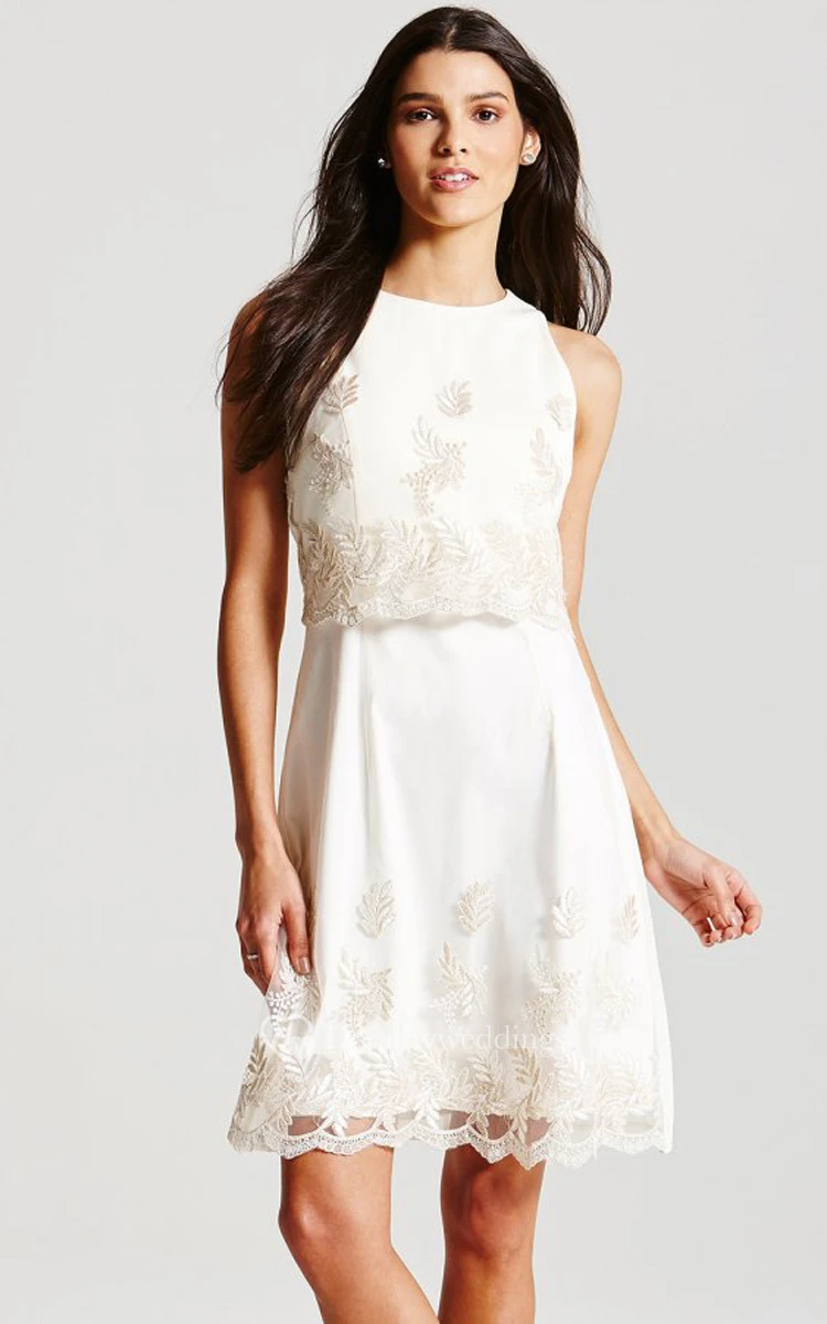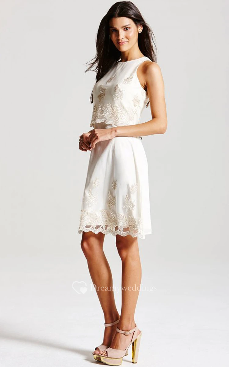High-Neck Sleeveless Knee-Length Dress With Lace