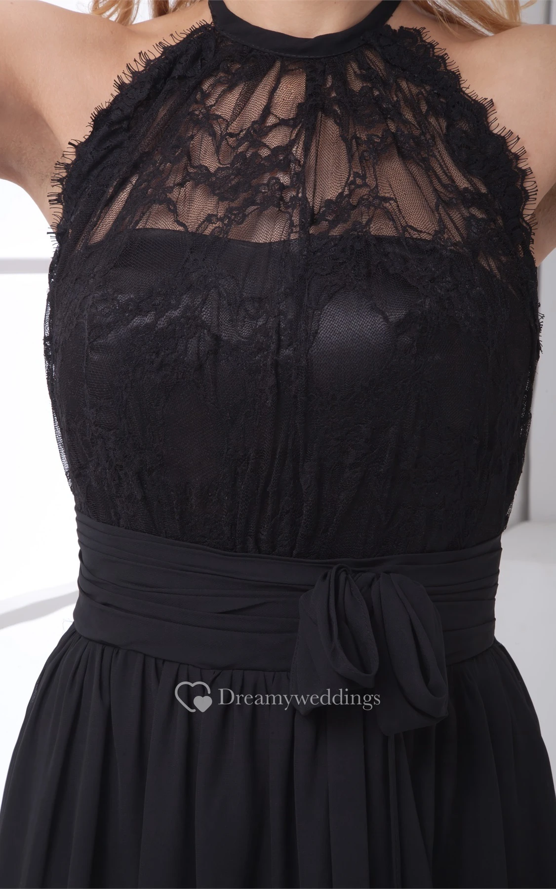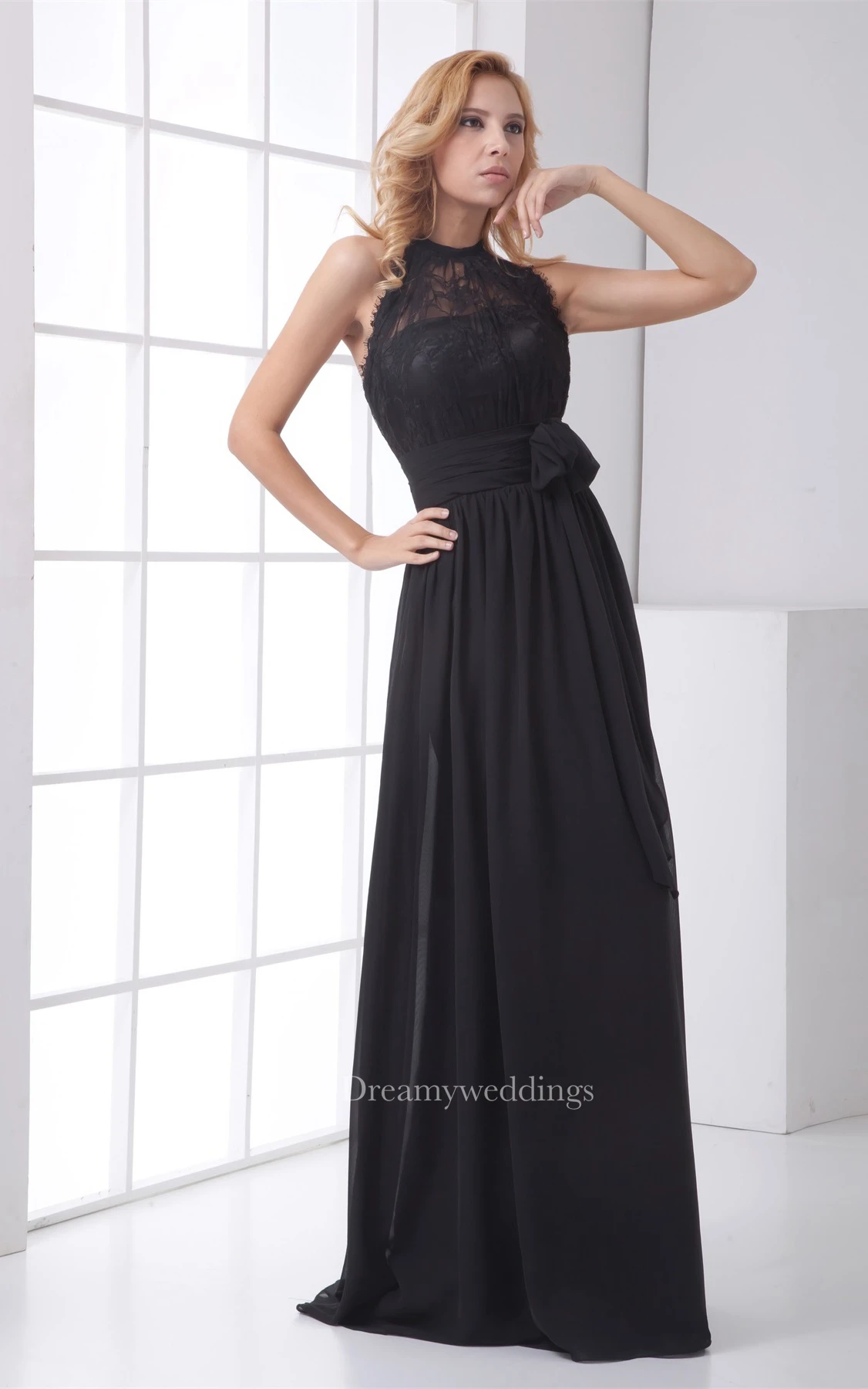 High-Neck Sleeveless Maxi Lace Dress With Bow