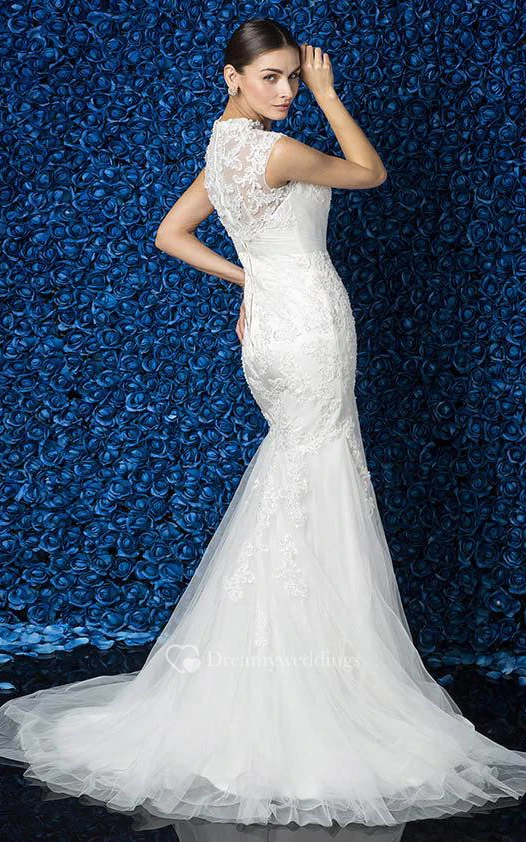 High Neck Sleeveless Mermaid Lace and Tulle Dress With Ruching