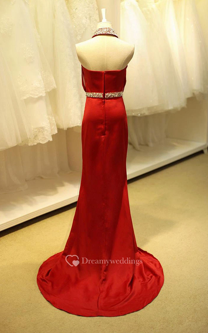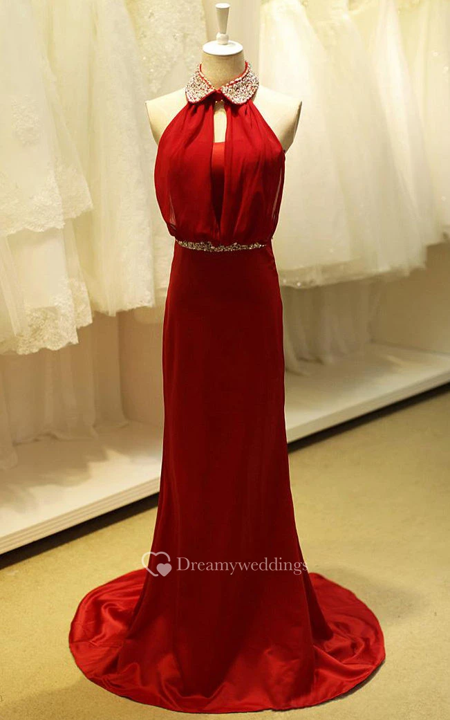 High-neck Sleeveless Sheath Dress with Sequins