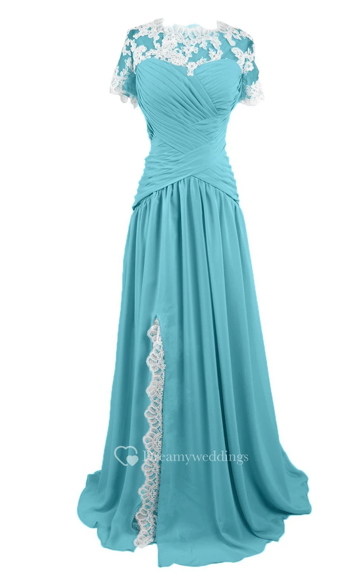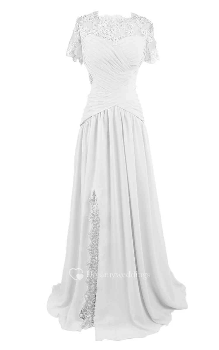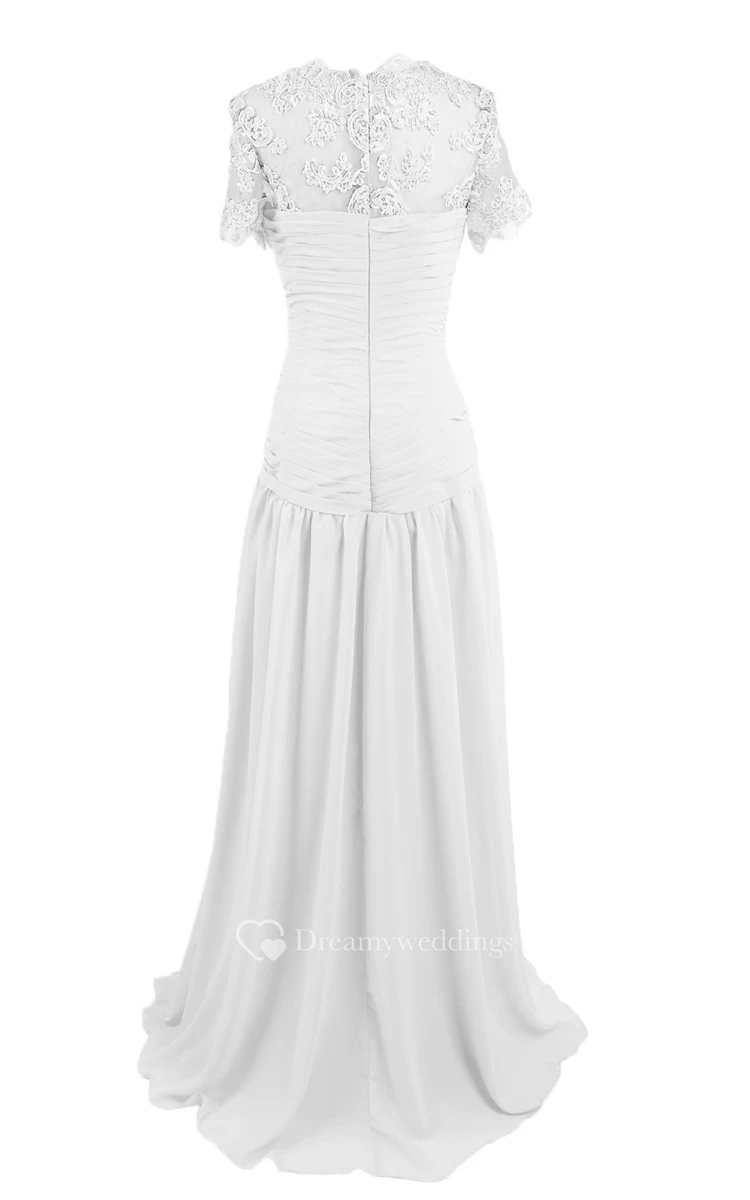 High-neck Sweep Train With Basque Waist