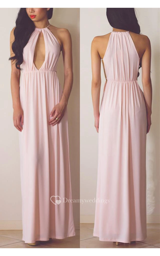 High Quality Halter A-line Evening Dress Sleeveless Floor-length