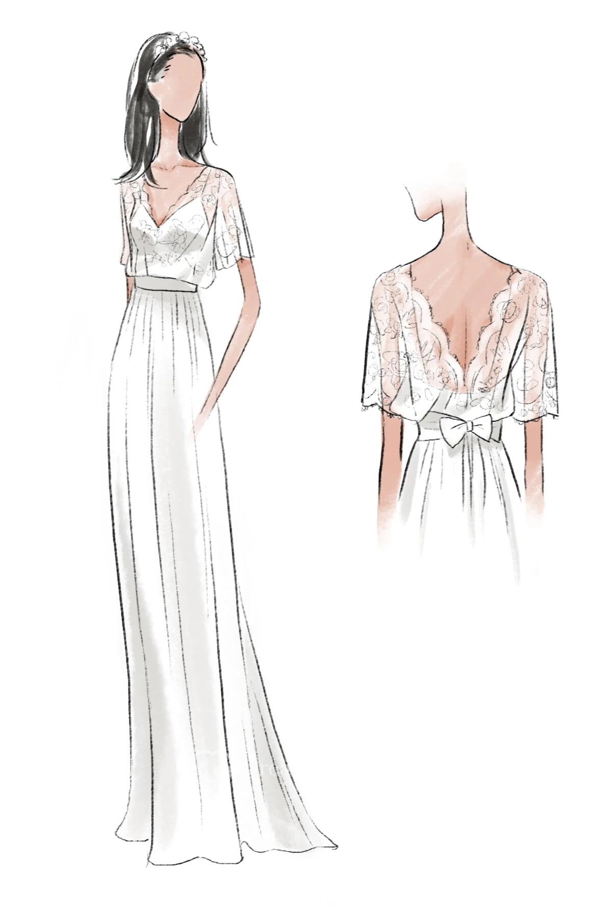 Bohemian V Neck Cleavage Lace Sleeves Wedding Dress