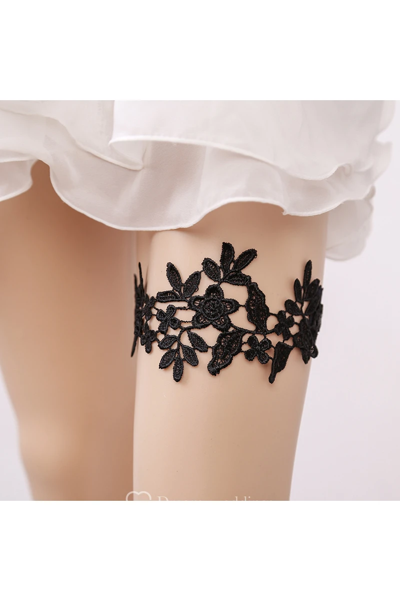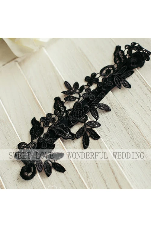 Hot Handmade Black Lace Applique Stretch Lace Garter Within Within 16-23inch