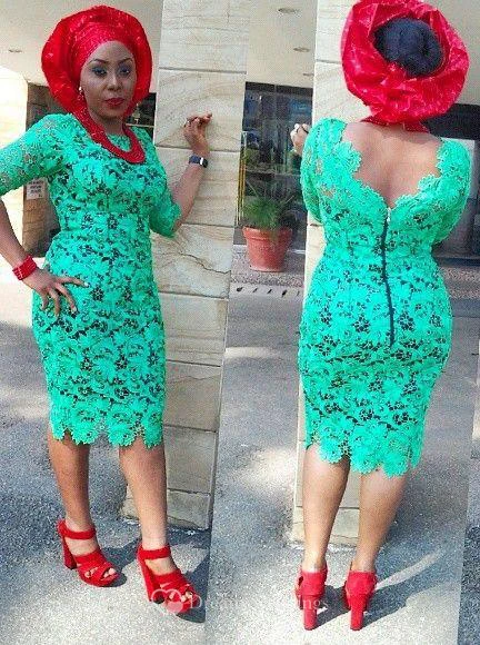 Hot Sale Green Half Sleeve Cocktail Dress Lace Sheath