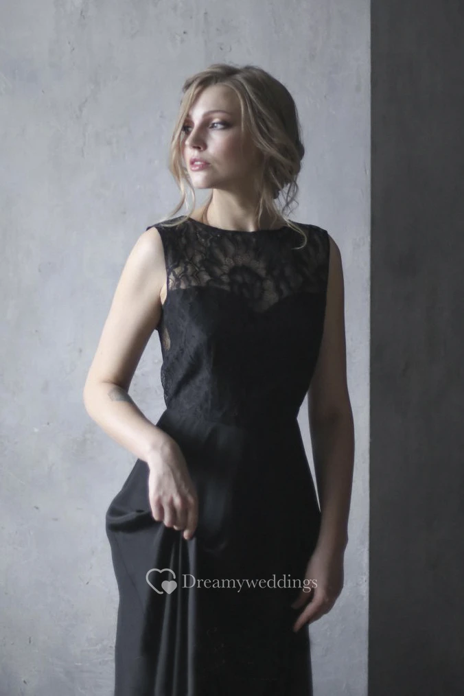 Illusion Back Sleeveless Elegant Sheath Chiffon Lace Wedding Gown With Buttons