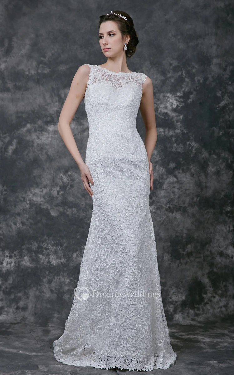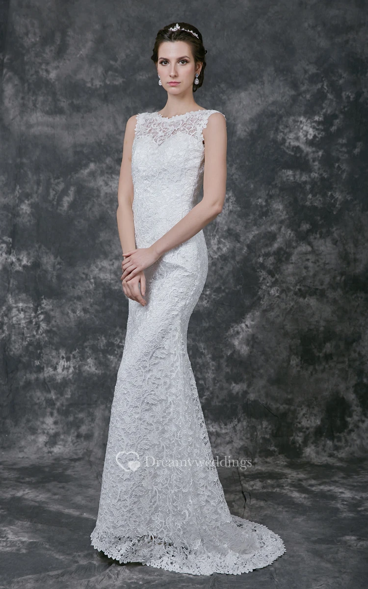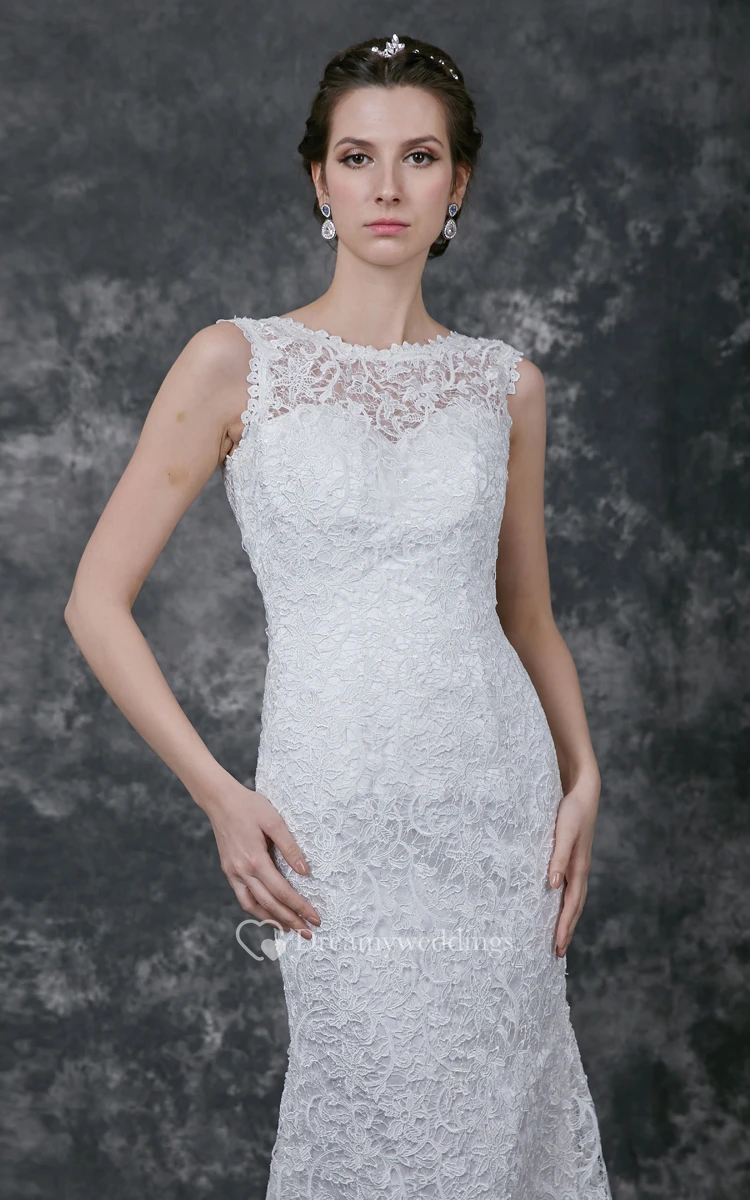 Illusion Cap-Sleeve Jewel Neck Mermaid Lace Gown With Open Back