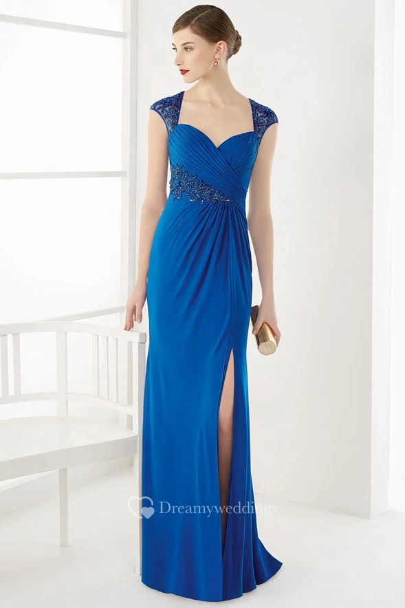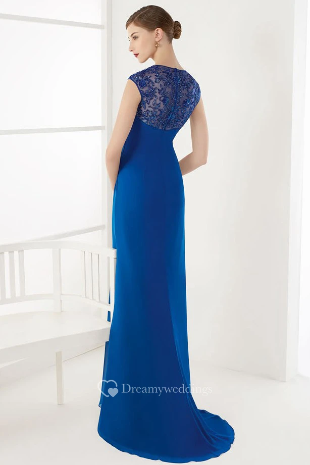 Illusion Cap Sleeve Sheath Long Prom Dress With Side Split