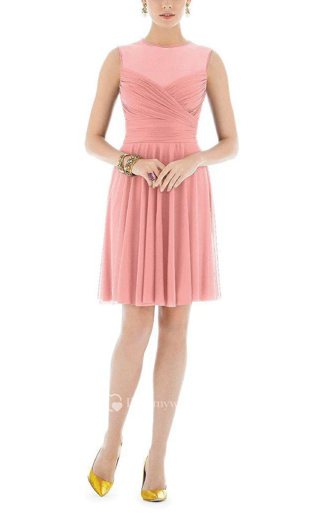 Illusion Jewel Neck Ruched Short Chiffon Dress