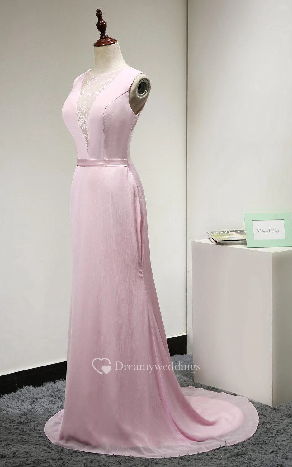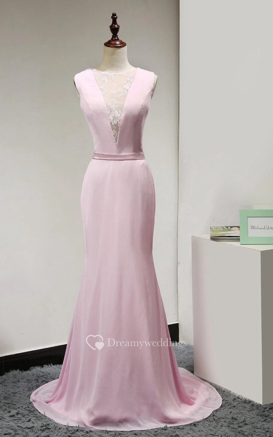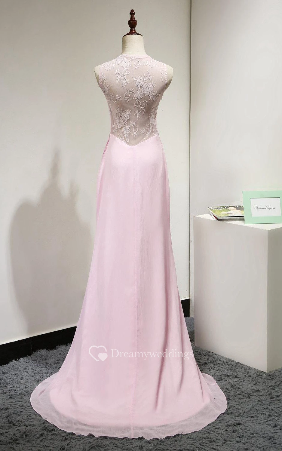 Illusion Jewel Neckline Mermaid Chiffon Long Dress With Illusion Lace Back