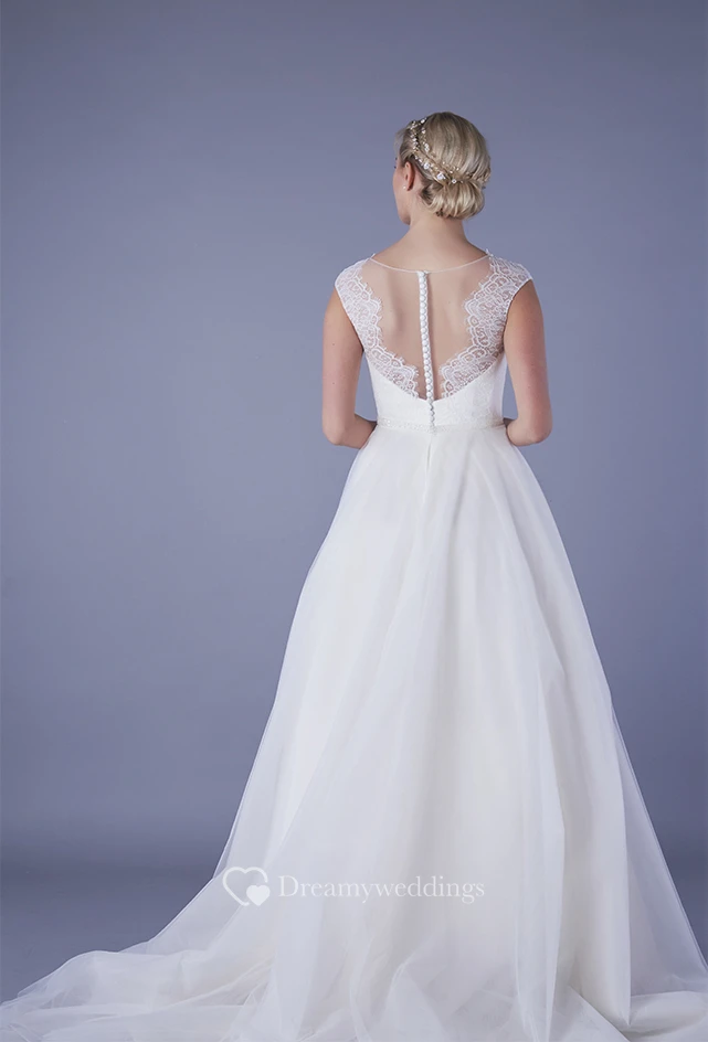 Illusion Lace Tulle A-line Ball Gown With V-neck And Back