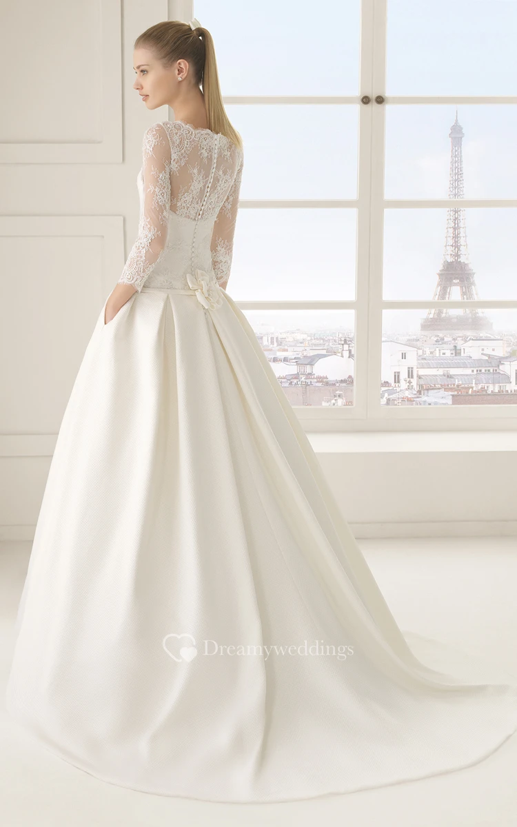 Illusion-Neck Back Sation Gown With Lacy Bodice