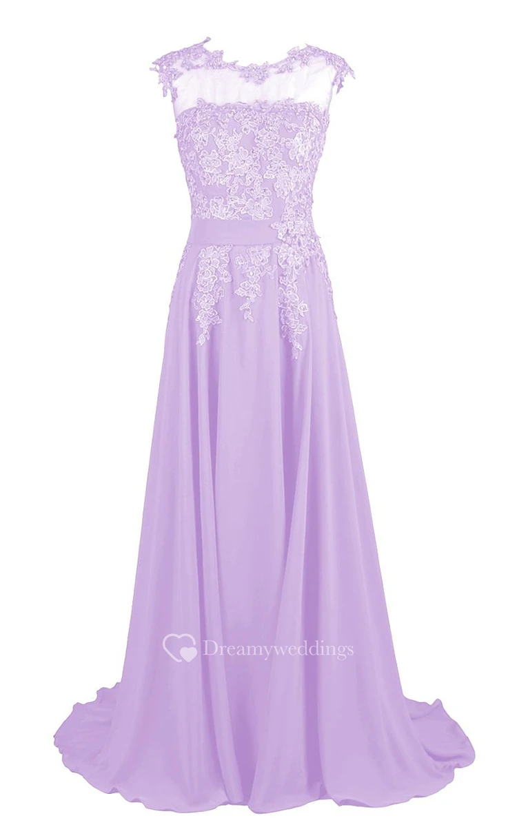 Illusion Neckline A-line Gown With Beaded Lace Appliques
