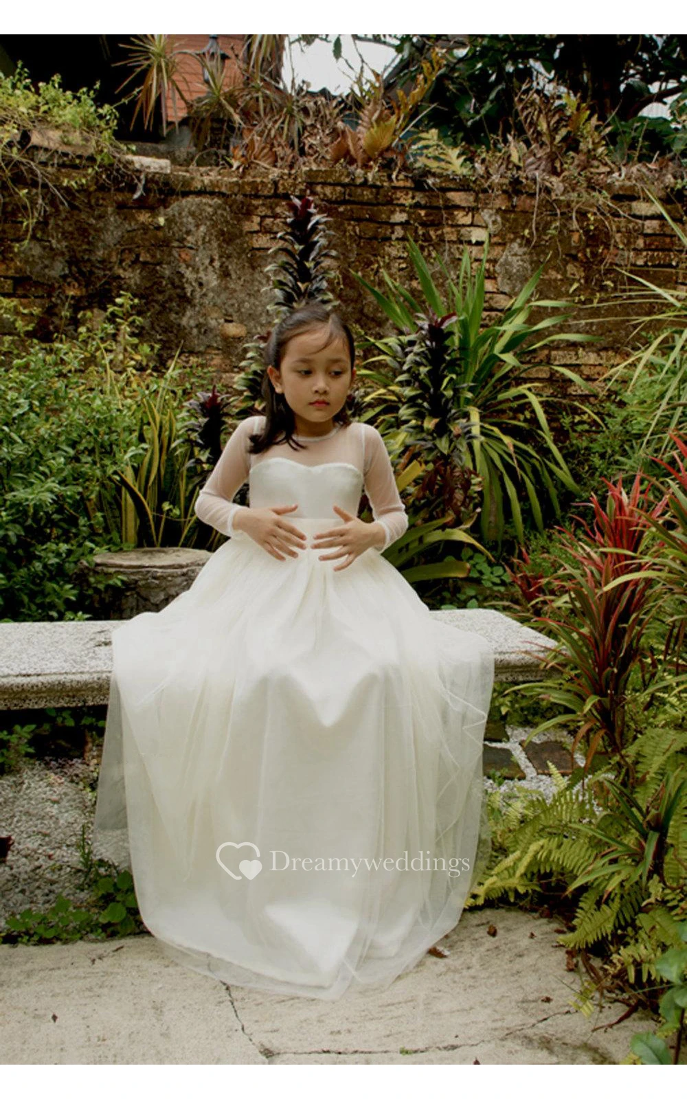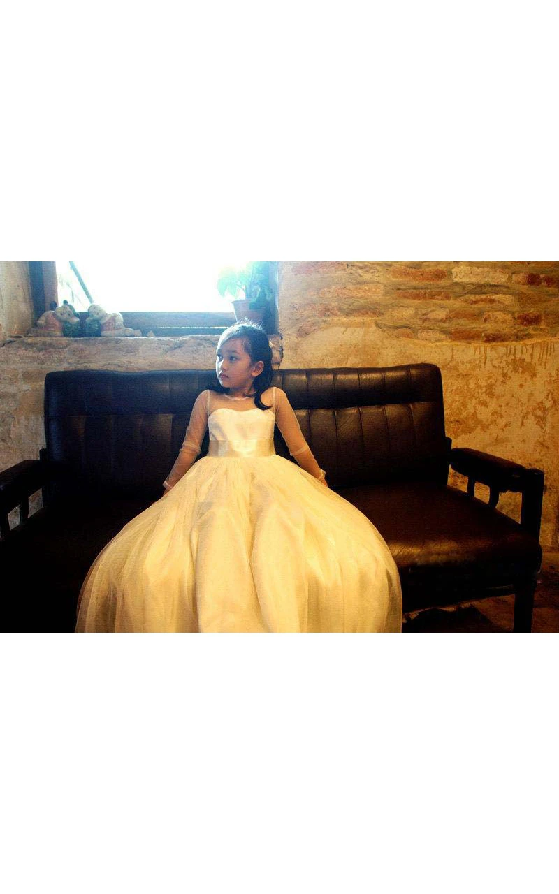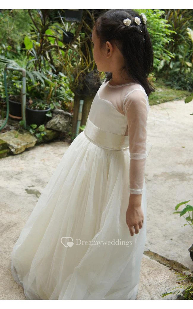 Illusion Neckline Long Sleeve A-line Pleated Chiffon Long Dress With Sash