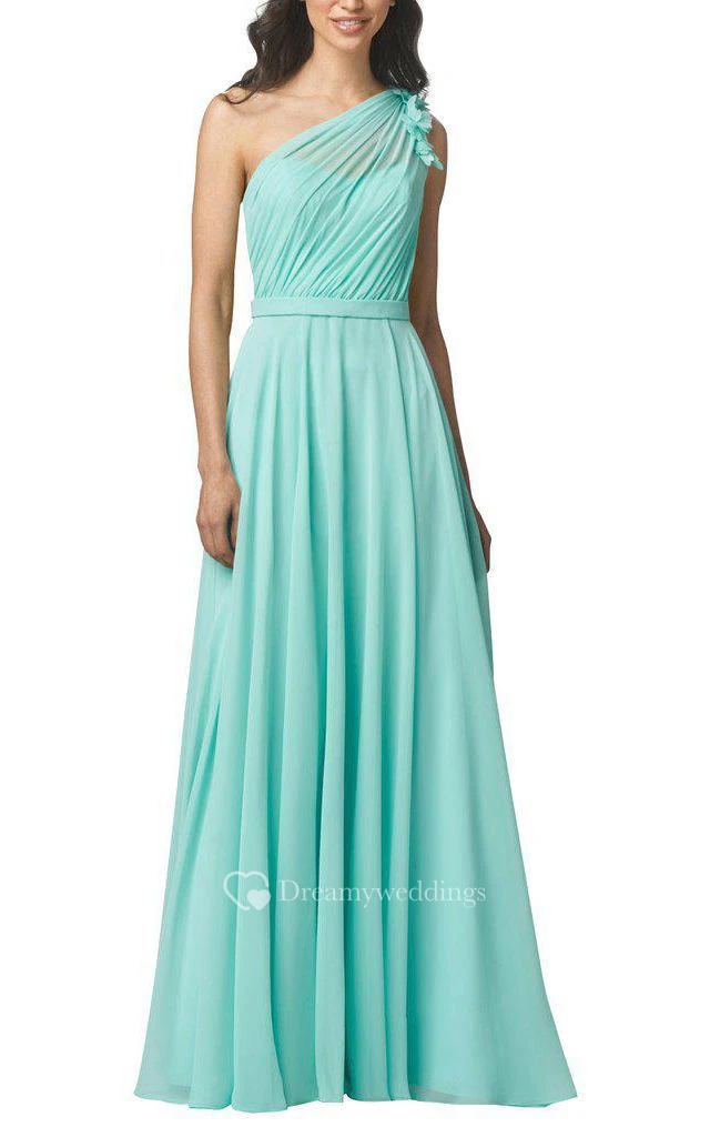 Illusion One Shoulder Chiffon Bridesmaid Dress with Flowers