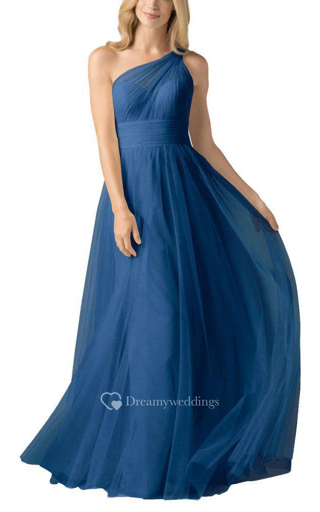 Illusion One Shoulder Ruched Tulle Bridesmaid Dress