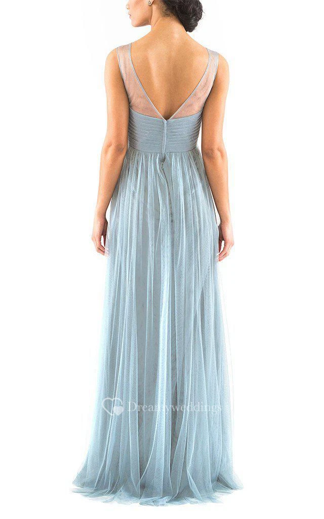 Illusion Tulle Floor-length V-back Dress