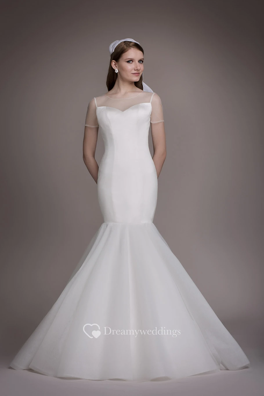 Impressive Mermaid/Trumpet Short Sleeve Bridal Gown With Cathedral Train