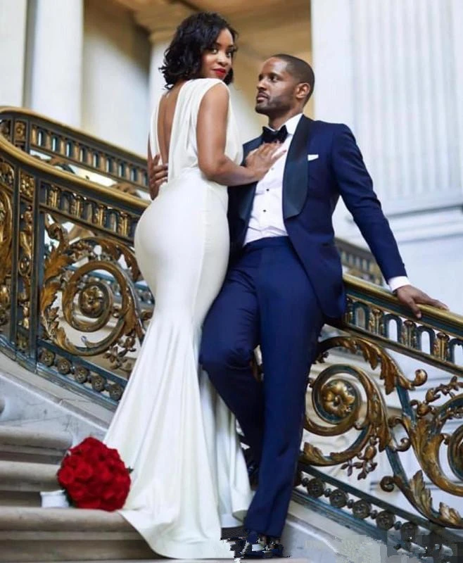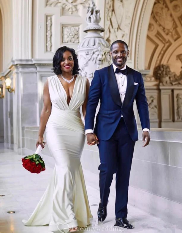 Impressive Sexy Plus Size Trumpet Deep-V Back Brush Train Dress With Pleats