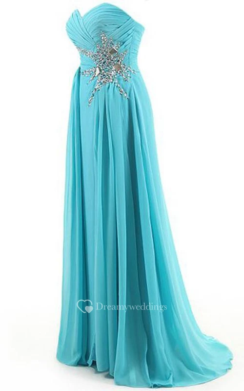 Impressive Sweetheart Ruched Beaded Long Prom Dress