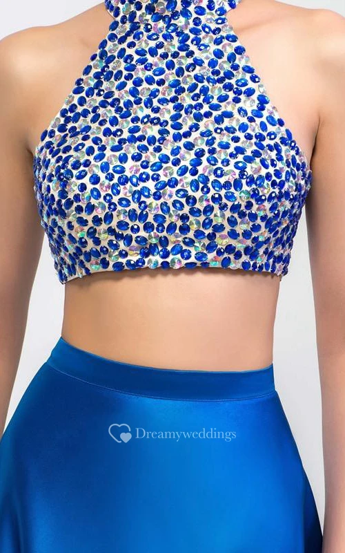 Jewel Neck Beaded Two-Piece Long Prom Dress