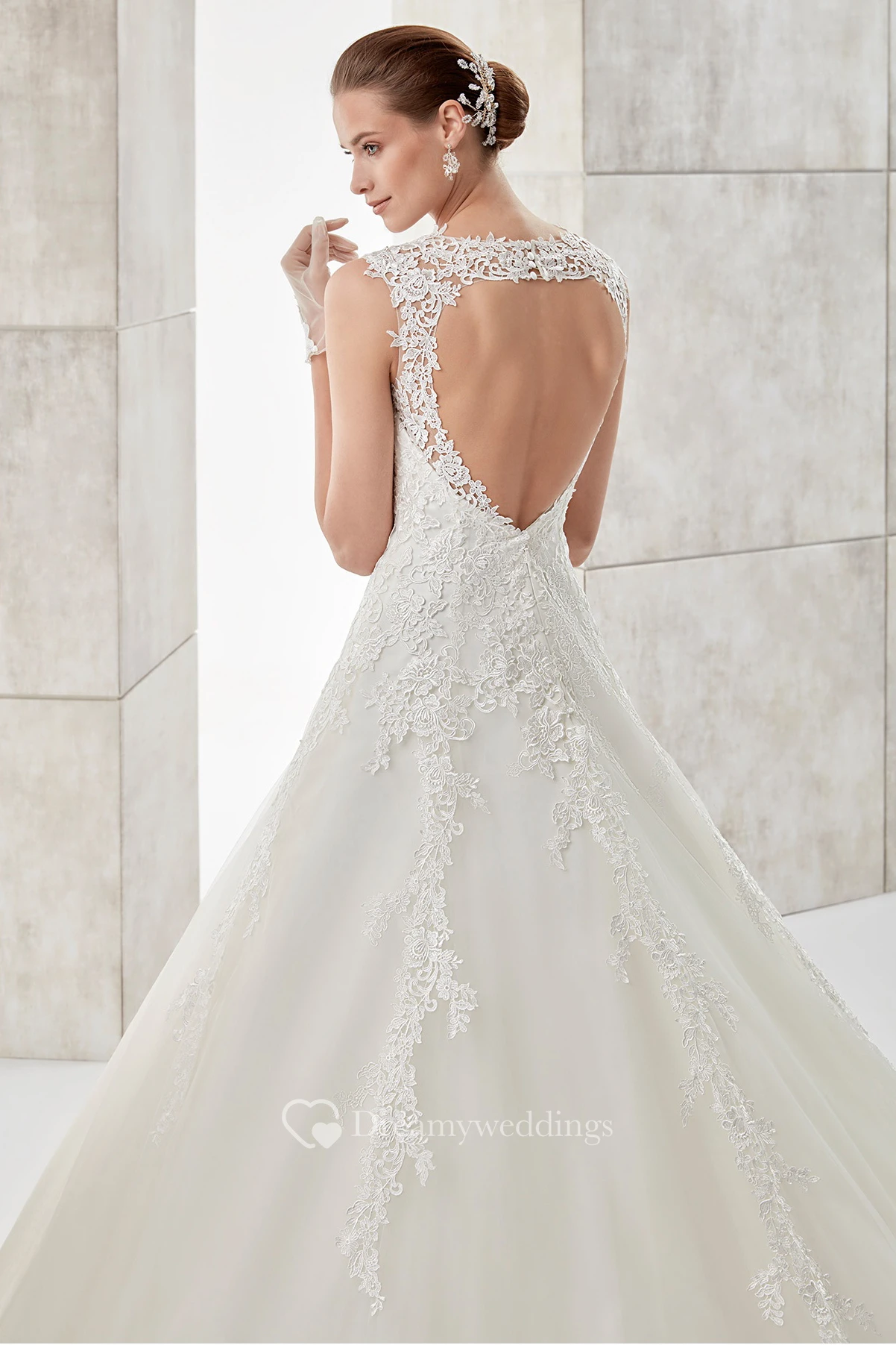 Jewel-Neck Illusive A-Line Wedding Dress With Lace Appliques And Open Back