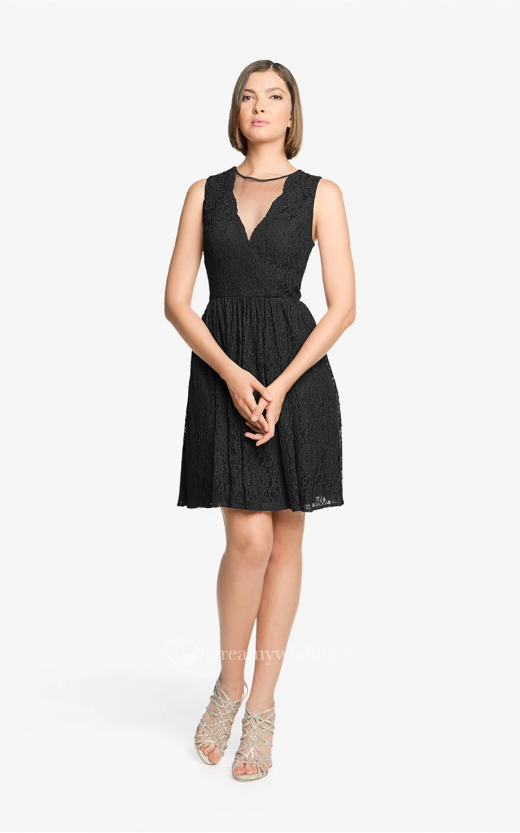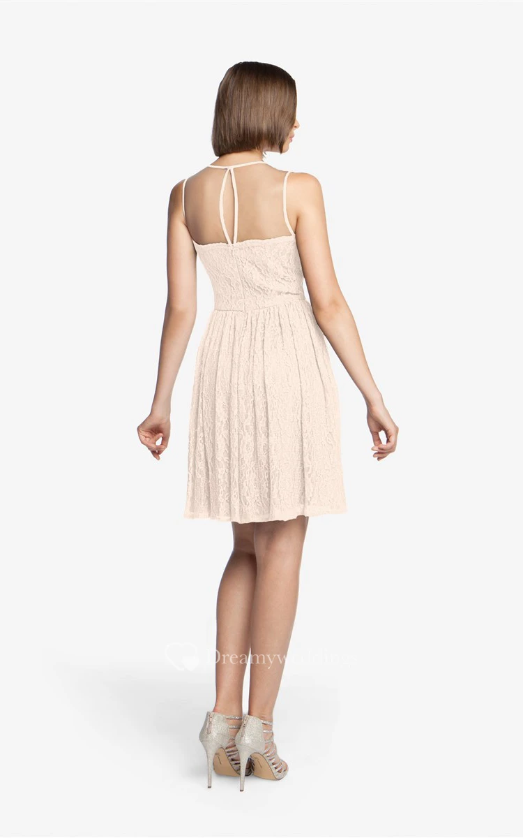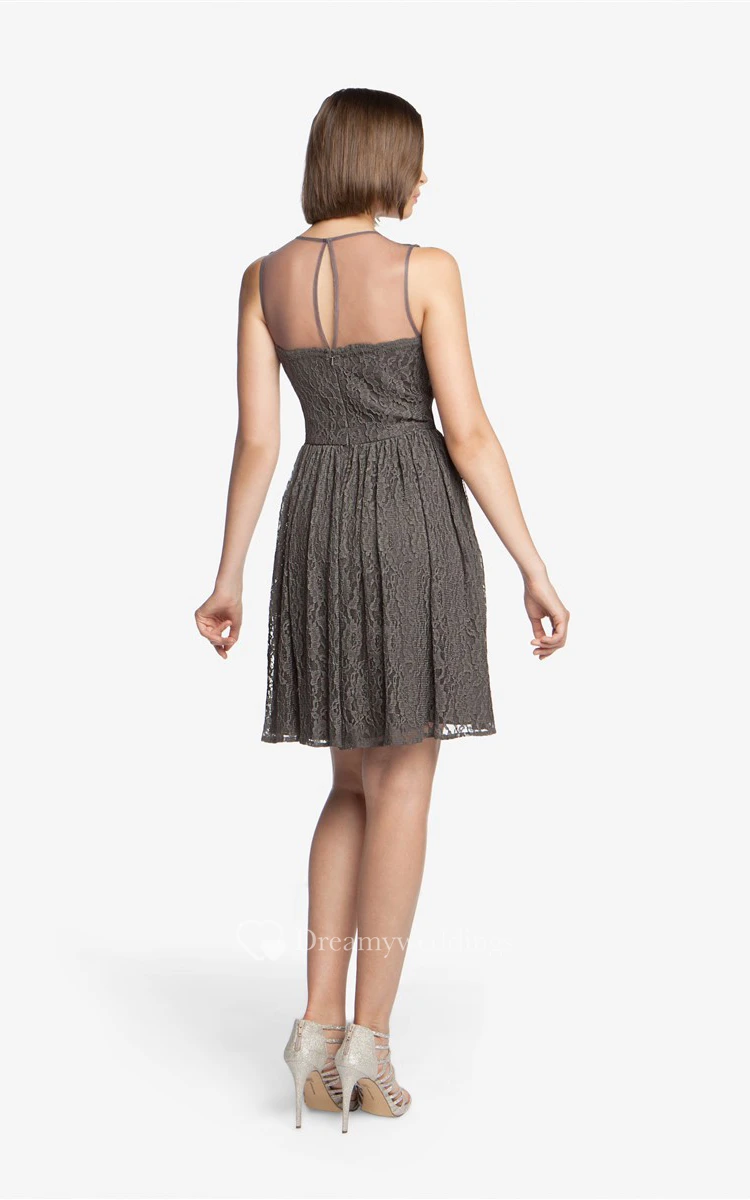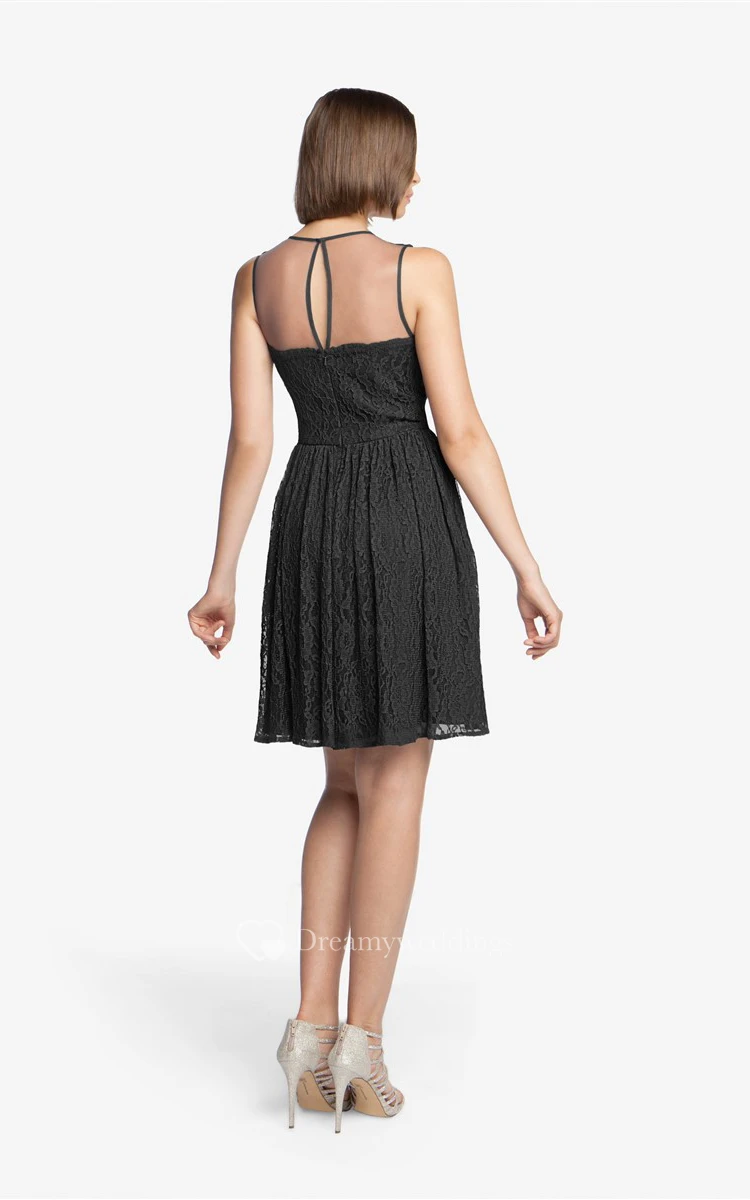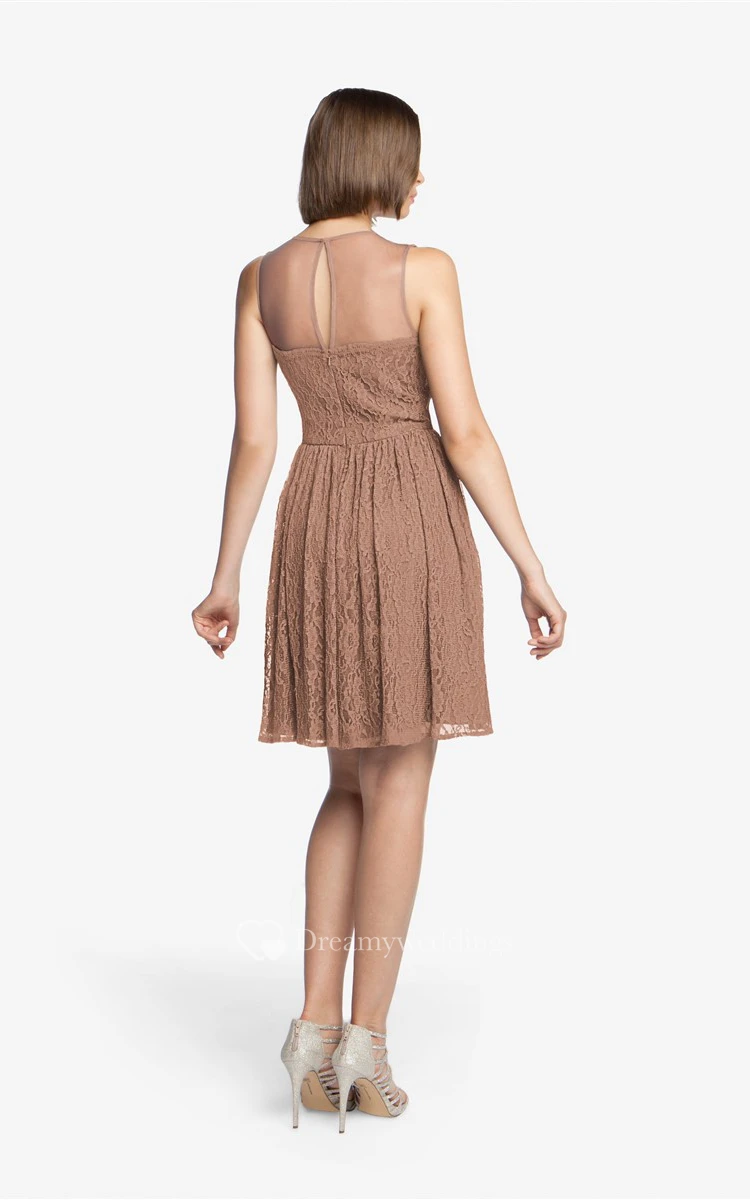 Jewel-Neck Lace Elegant Dress With Illusion Keyhole Back