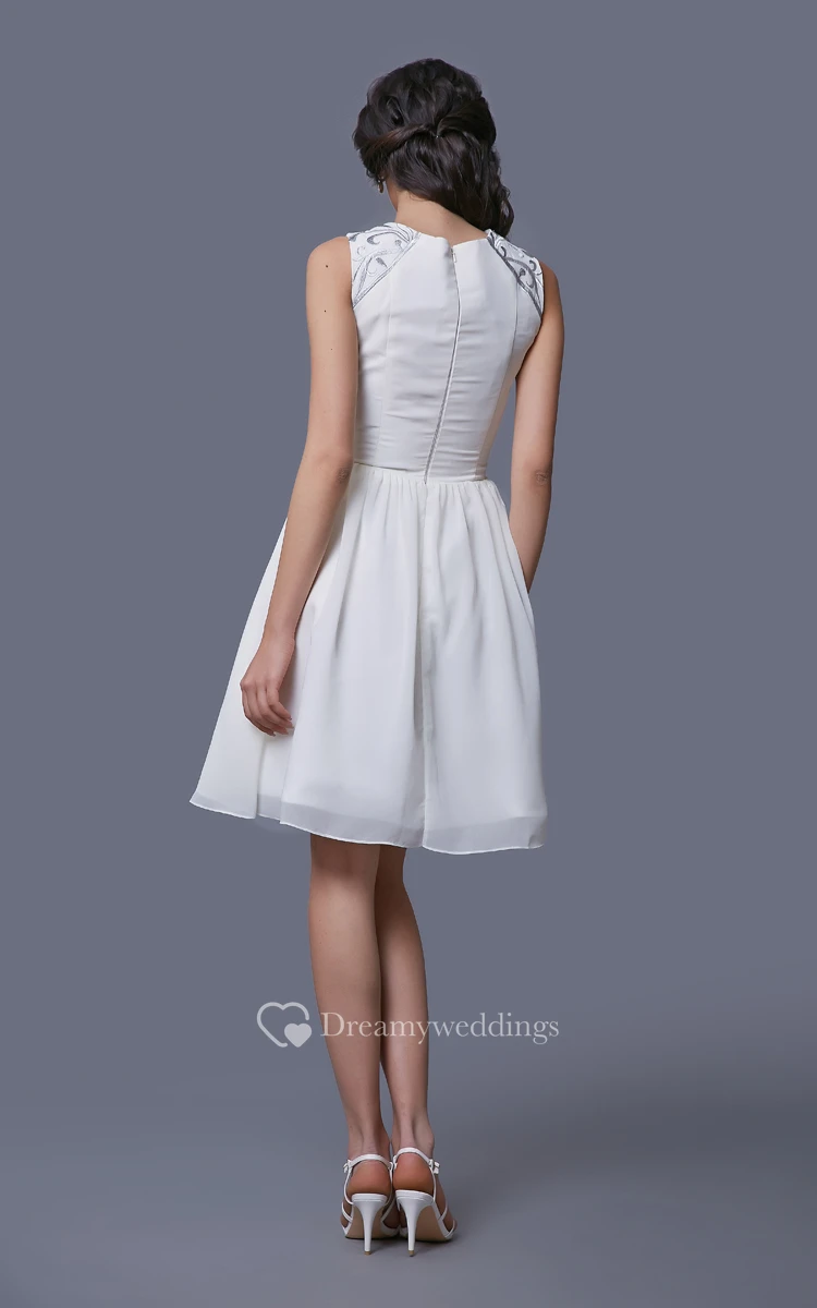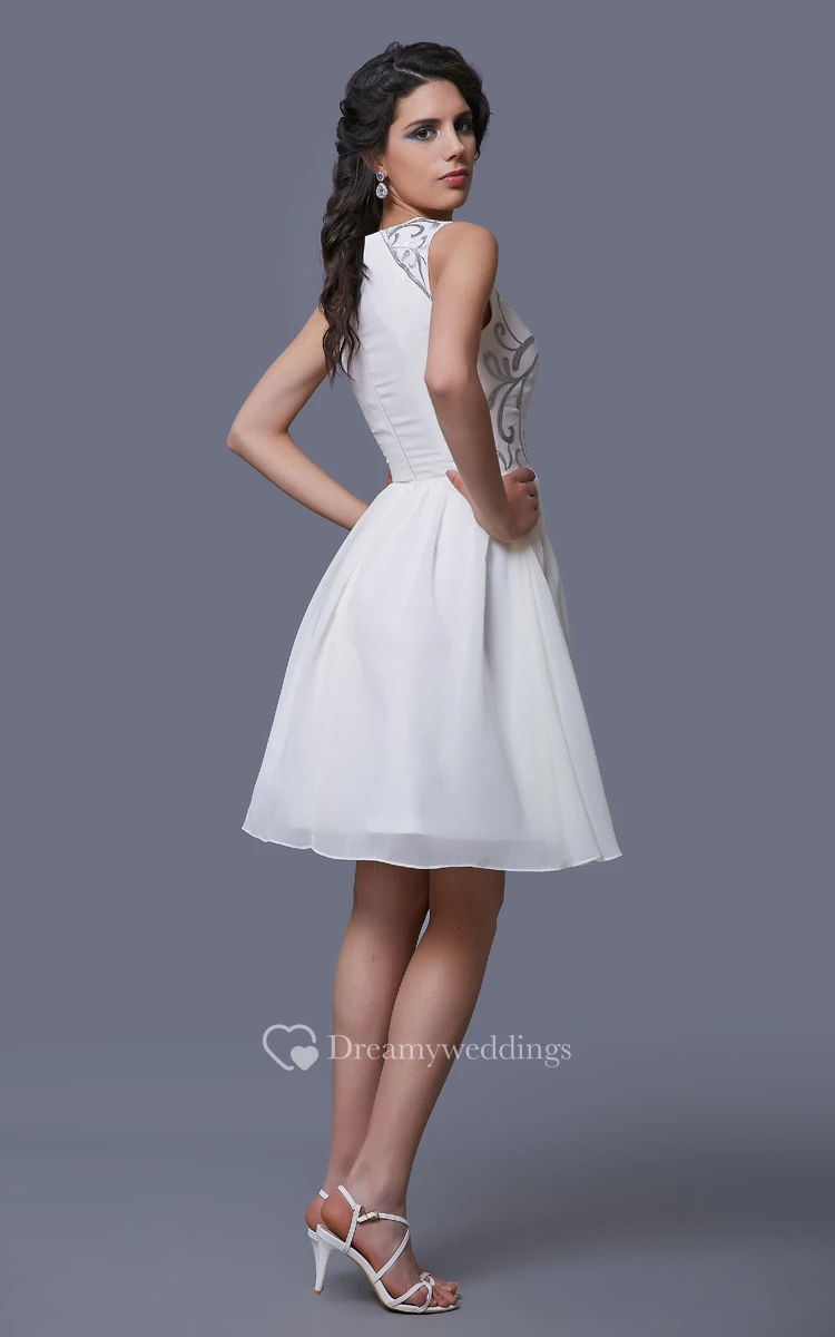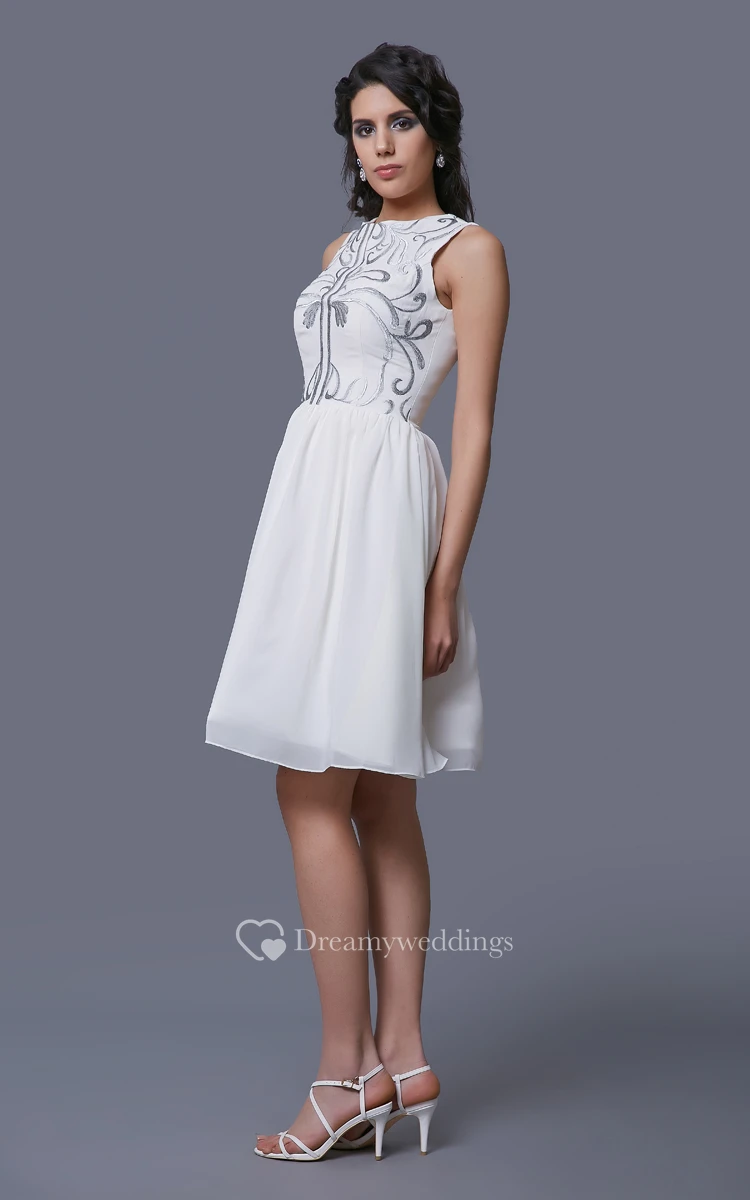 Jewel Neck Sleeveless A-Line Knee Length Chiffon Dress With Embroidery