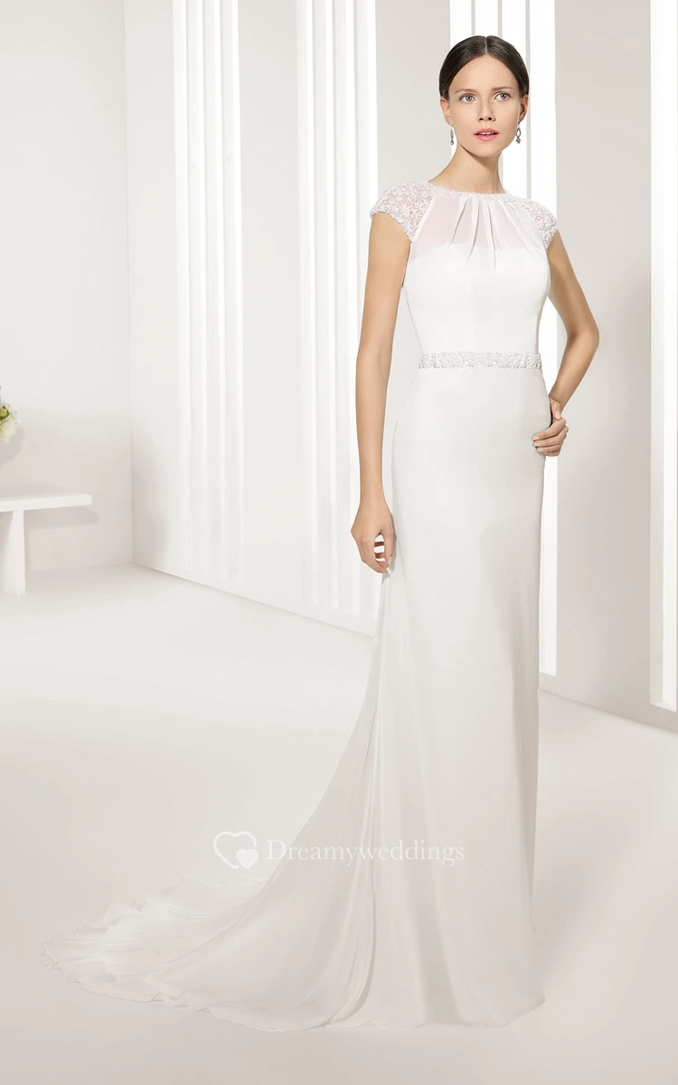 Jewel Neckline Keyhole Back Cap-Sleeved Sheath