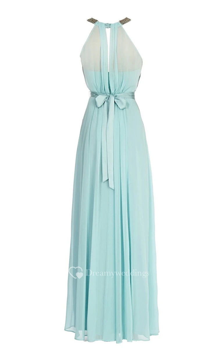 Jewel Pleated Chiffon A-line Gown With Satin Sash