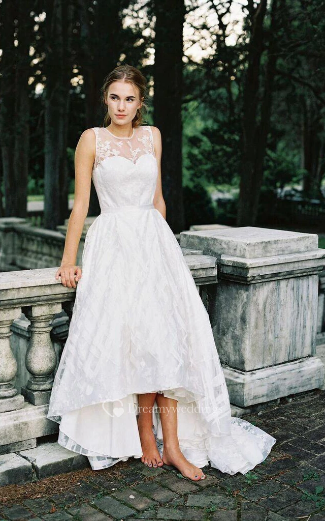 Jewel Sleeveless A-Line High-Low Dress With Appliques