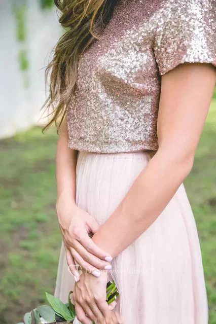 Jewel Spaghetti T-shirt Sleeveless Short Sleeve Floor-length Tulle Sequins A-Line Dress