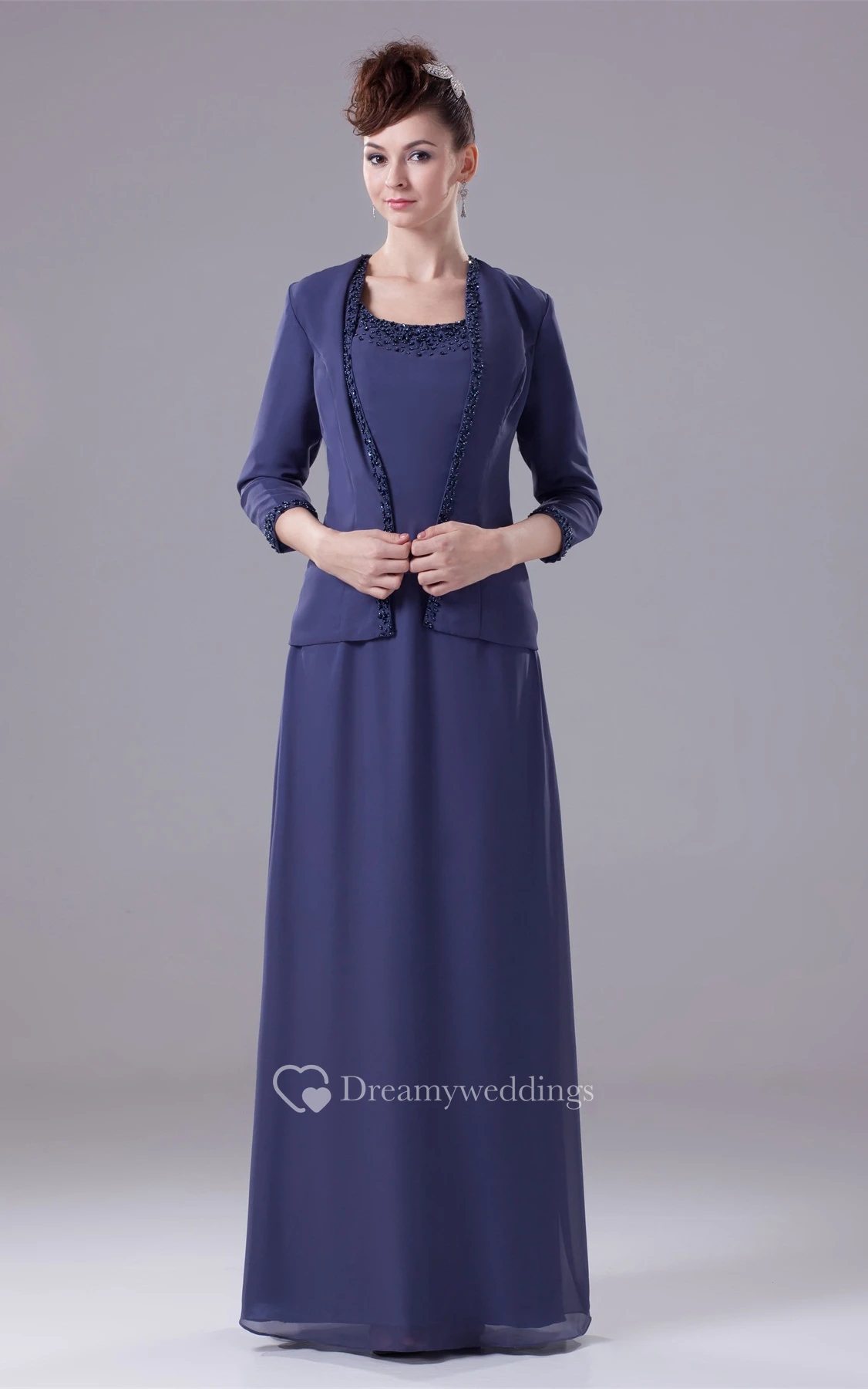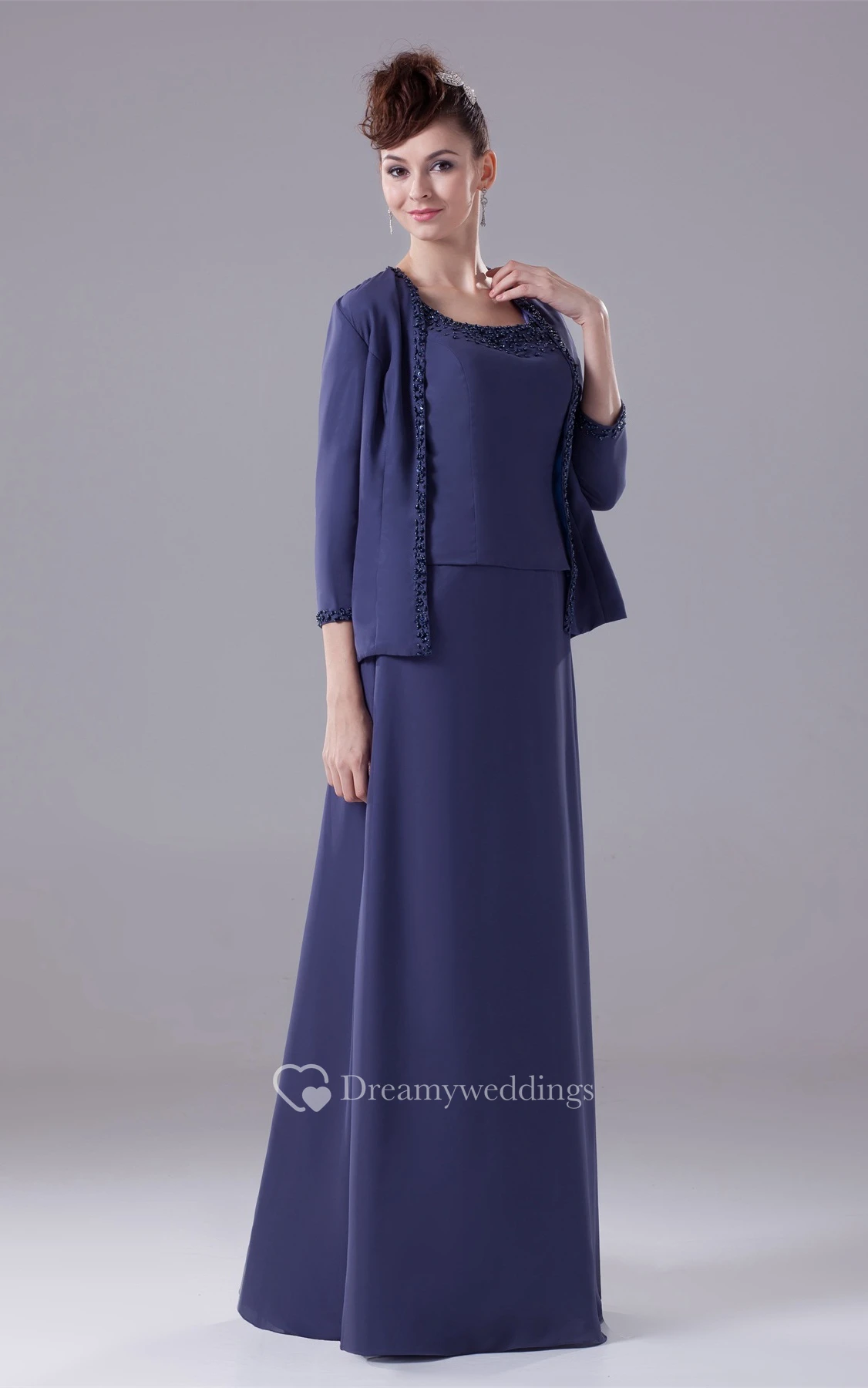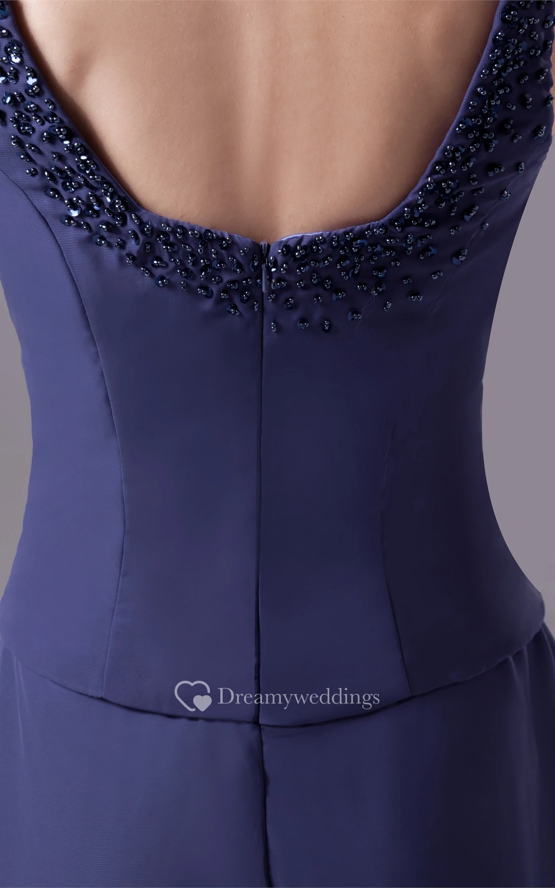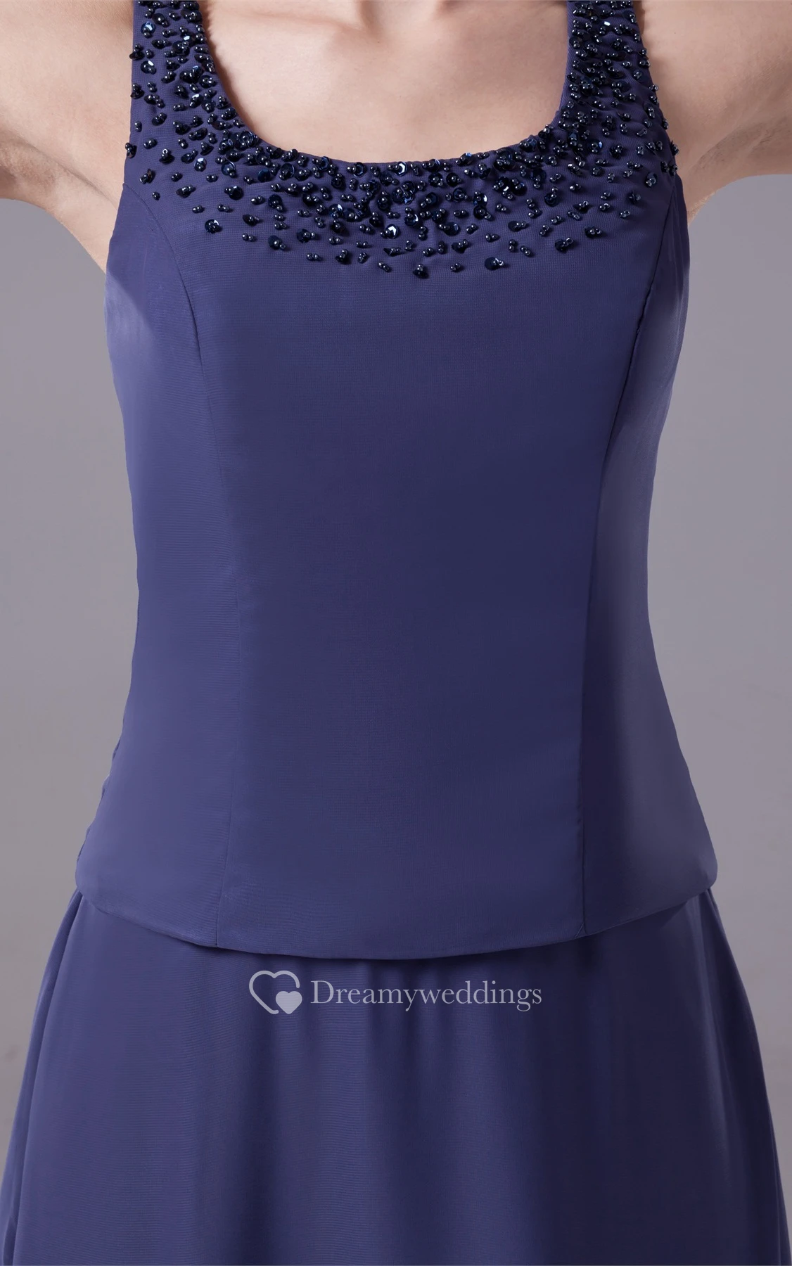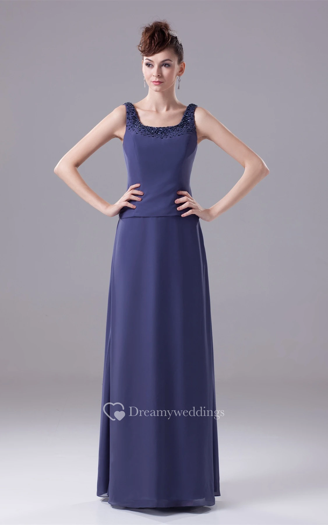 Jeweled Sleeveless Floor Length Square A-Line Dress With Zipper Back