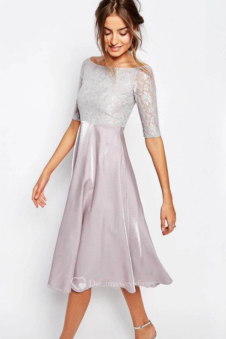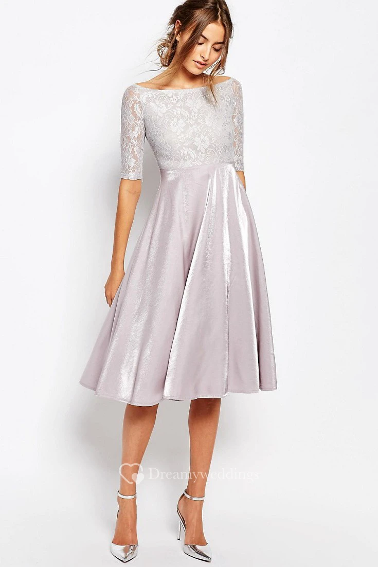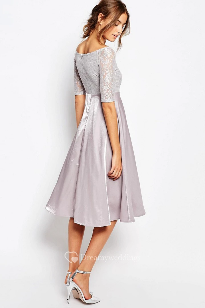 Knee-Length A-Line Bateau Neck Illusion Sleeve Taffeta Bridesmaid Dress