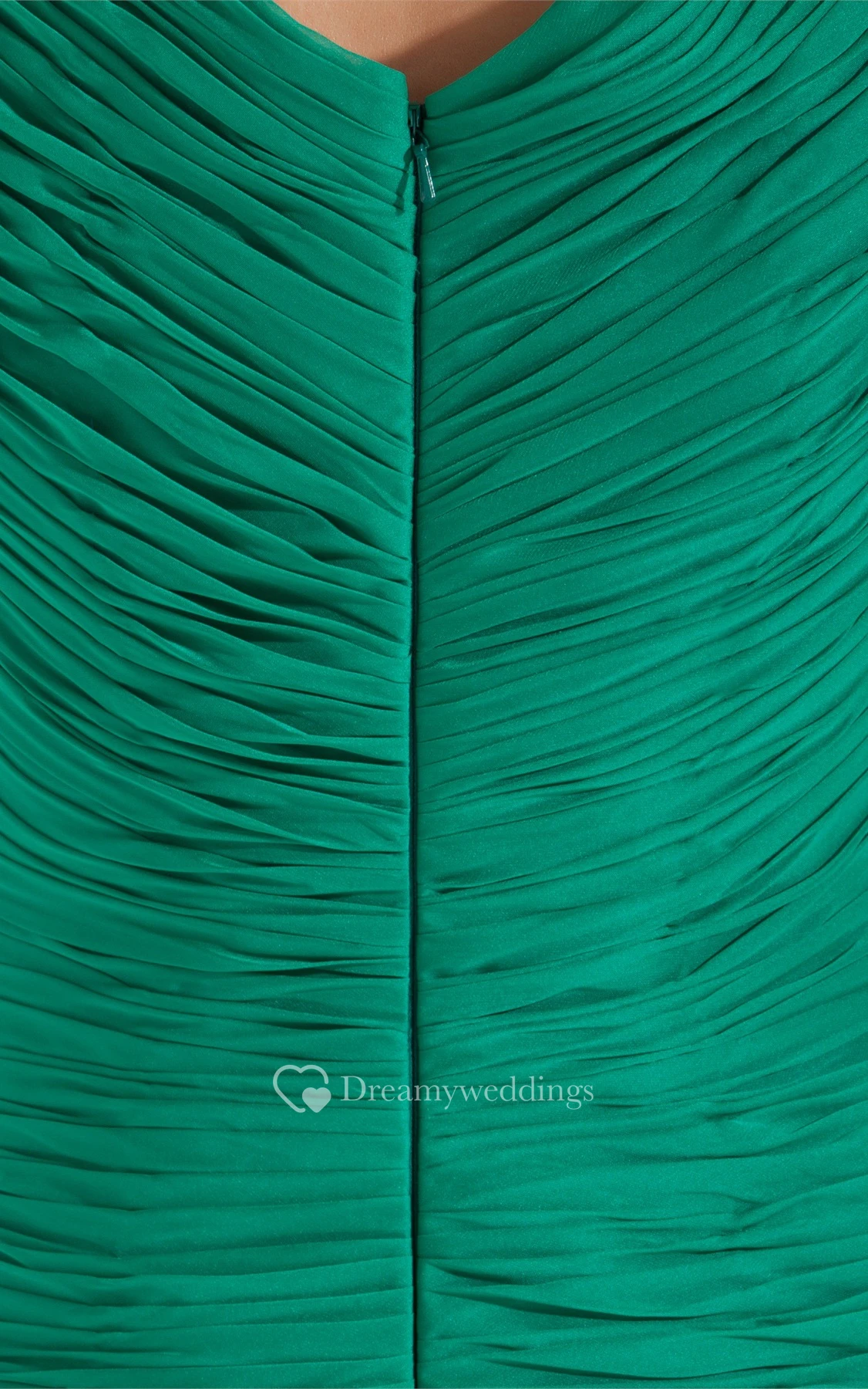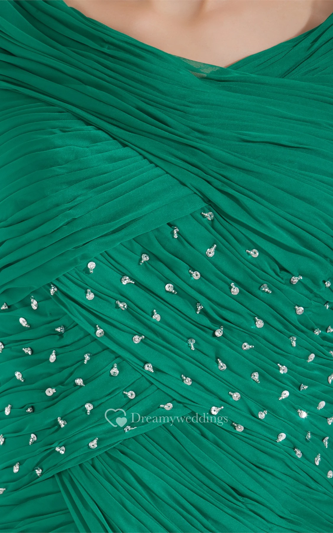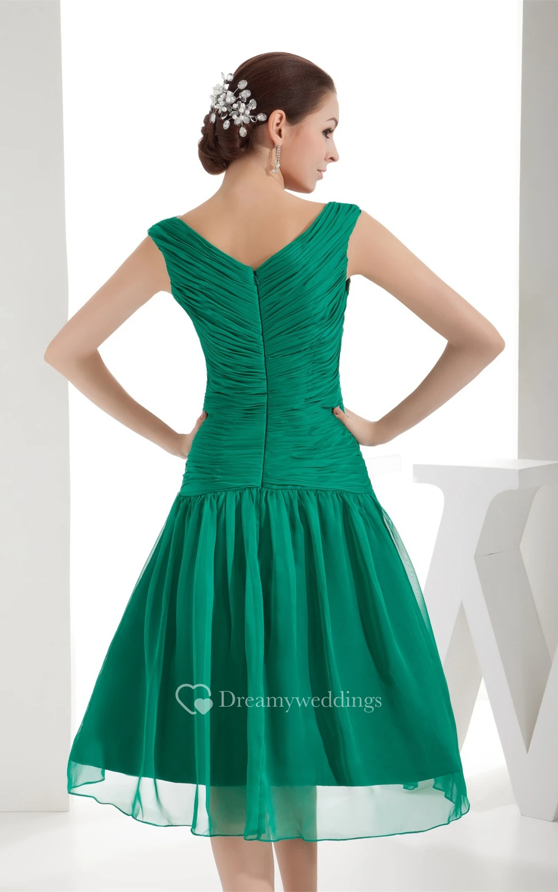 Knee Length Bateau Ruched Criss Cross Dress With Tulle Overlay and Beadings