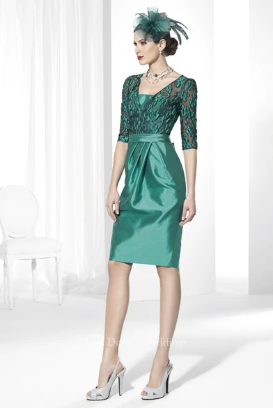 Knee-Length Embroidered Half-Sleeve Satin Prom Dress With Bow