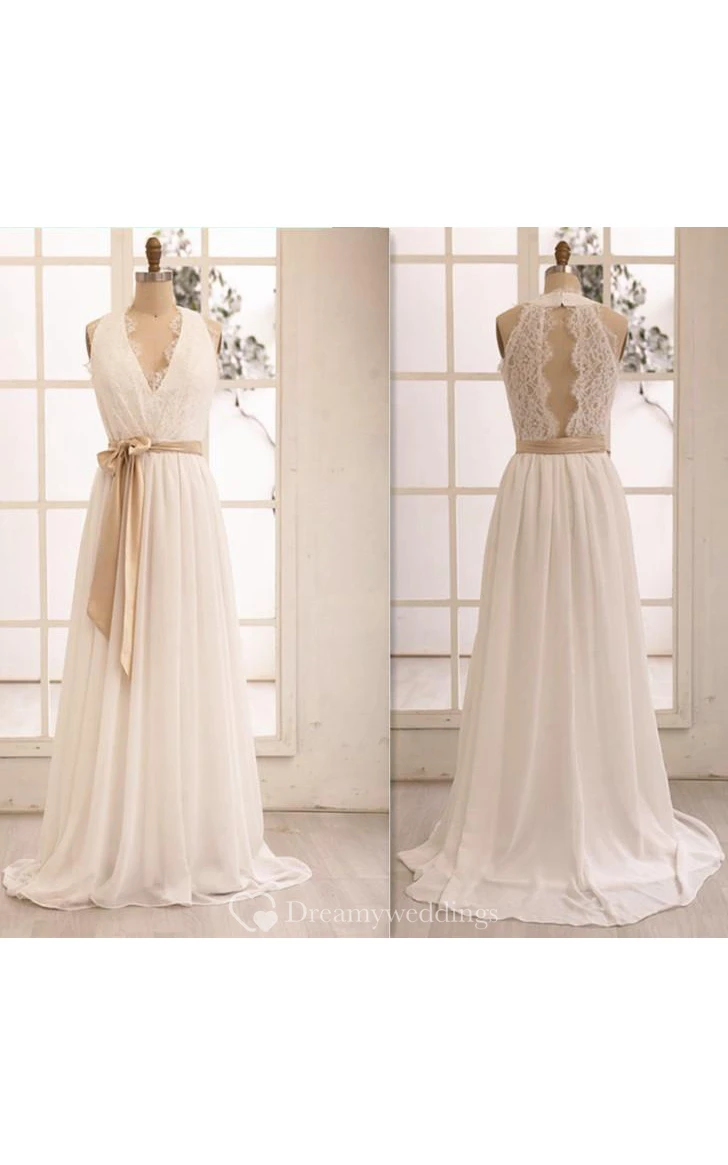 Knee-Length Halter Keyhole Chiffon Lace Dress