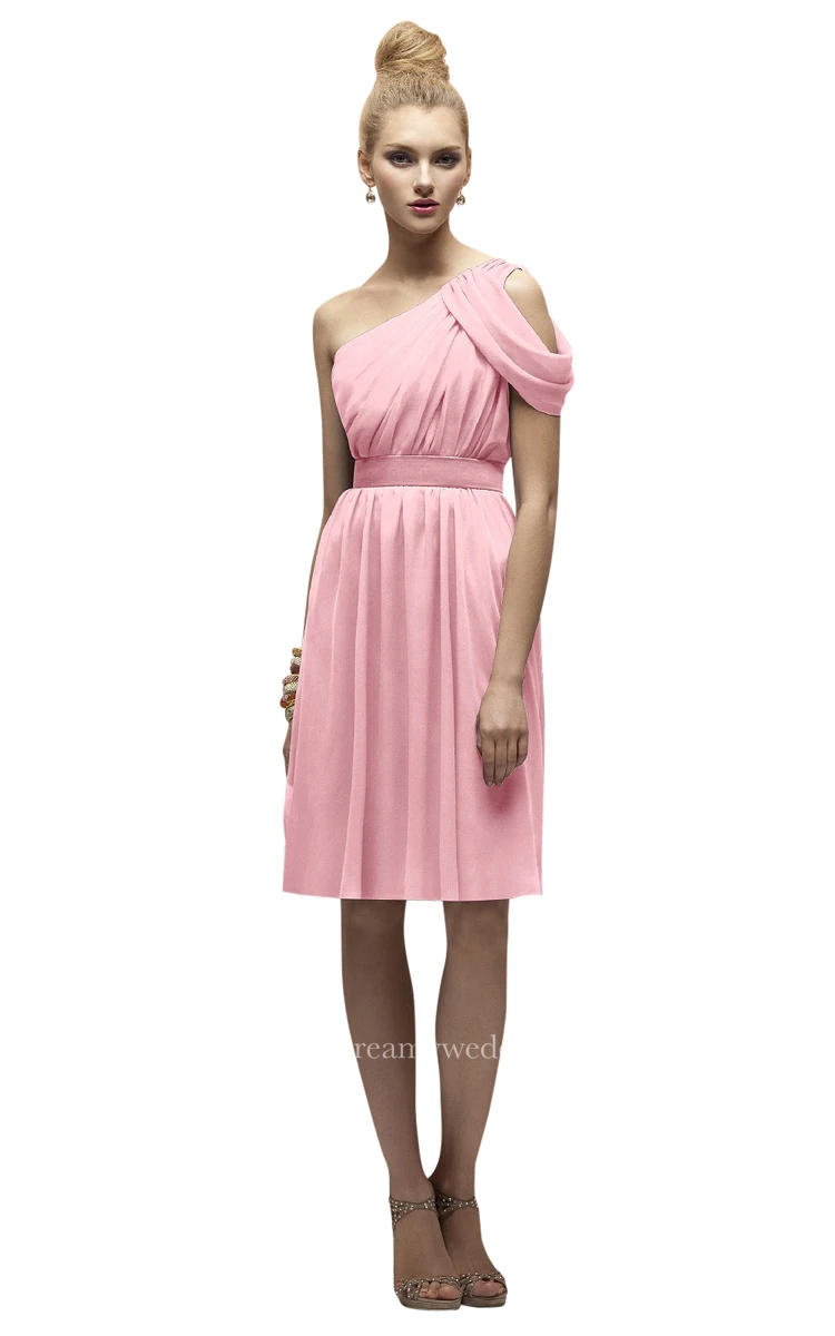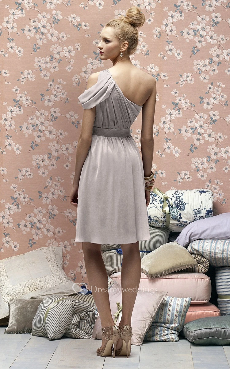 Knee-Length One-Shoulder Stylish Dress With Satin Sash