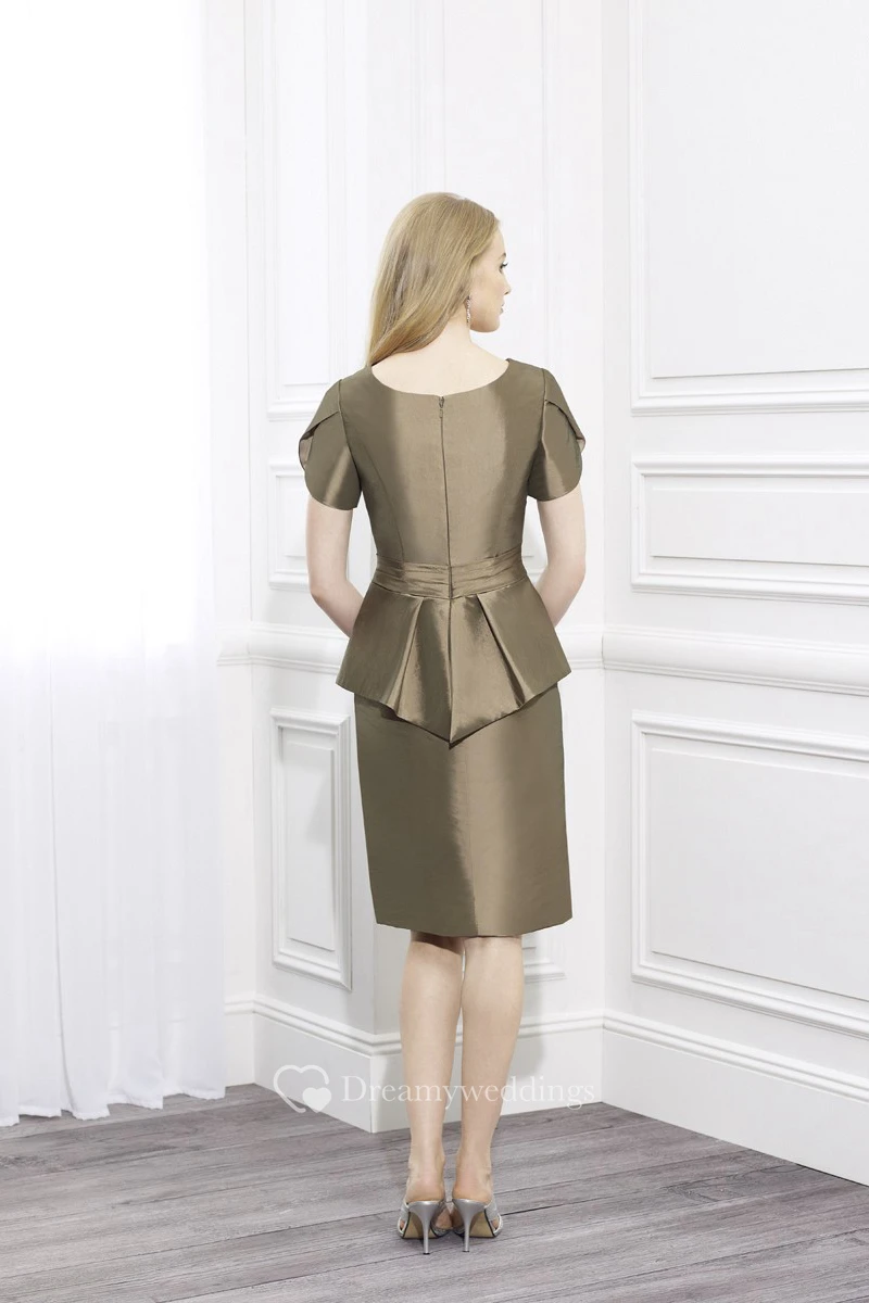 Knee-Length Pencil V-Neck Short Sleeve Satin Mother Of The Bride Dress With Broach