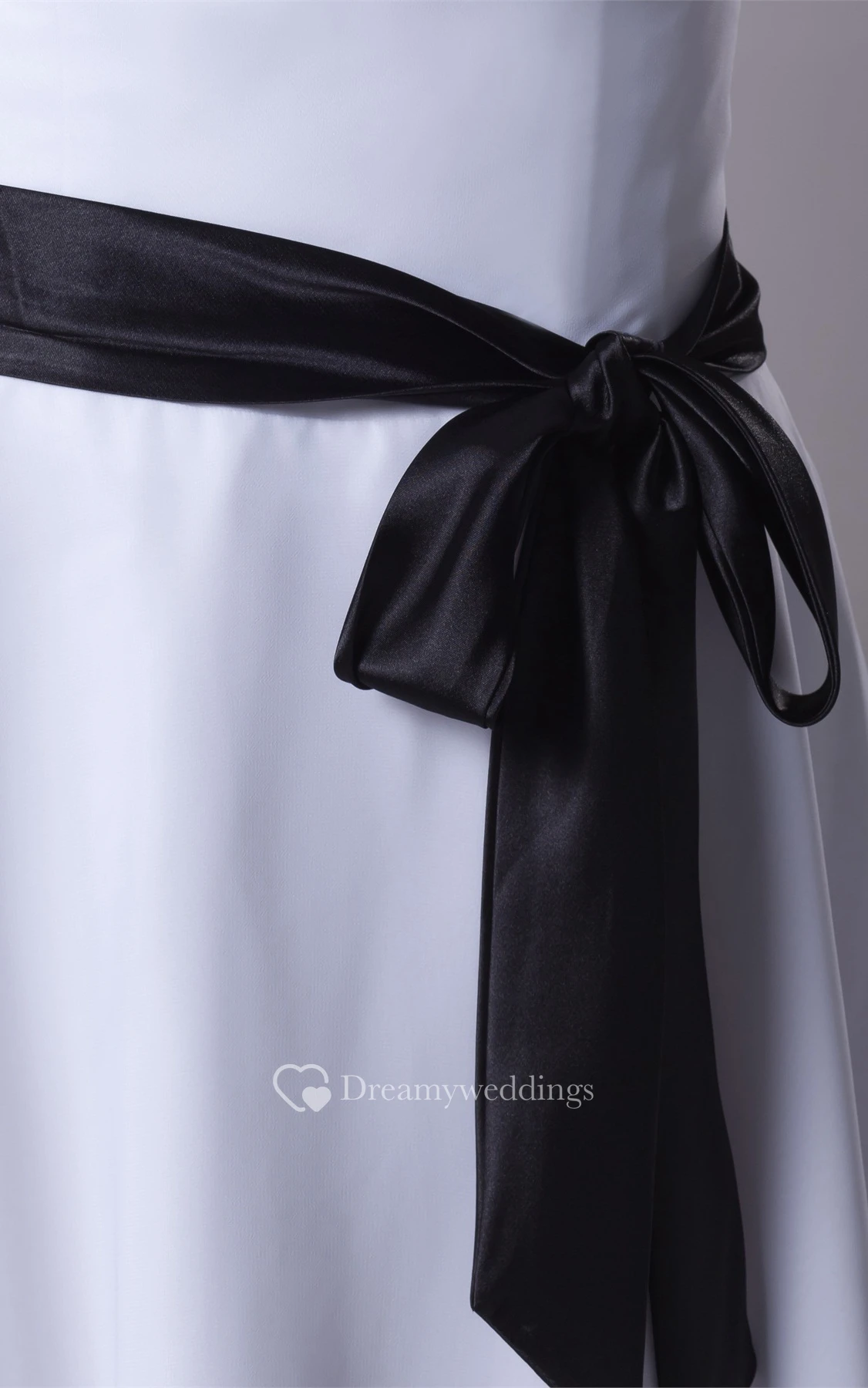 Knee Length Ruched Sleeveless A-Line Gown With Bowed Sash and Zipper Back