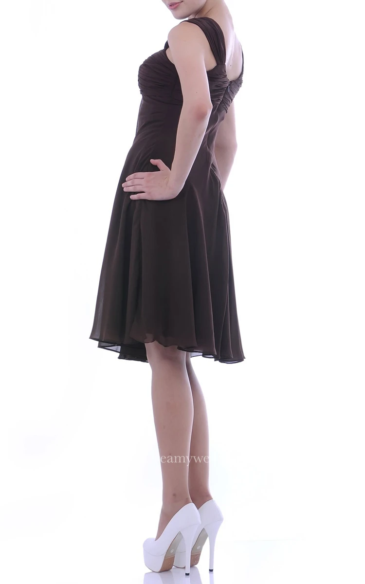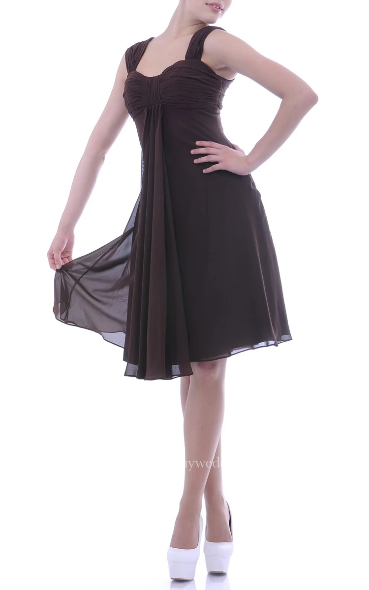 Knee-length Square Empire Draped Chiffon Bridesmaid Dress