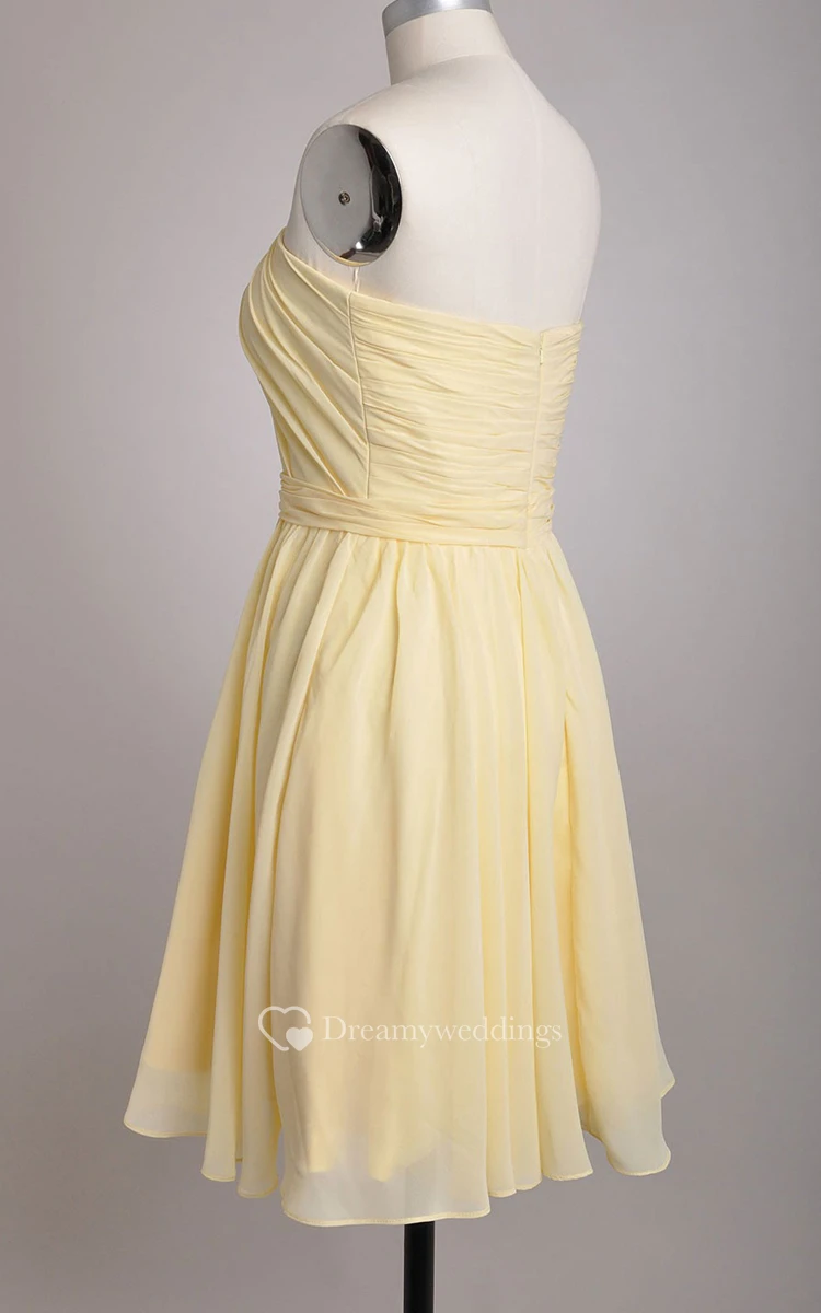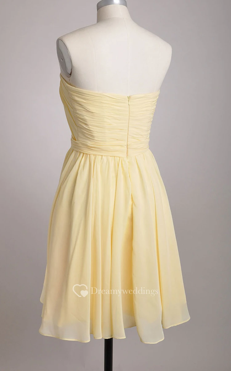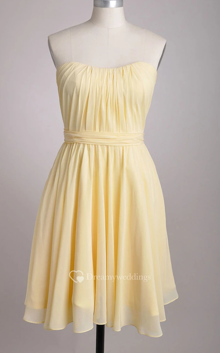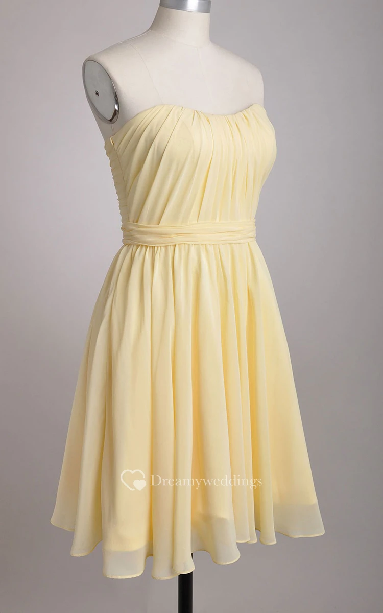 Knee-length Strapless A-line Chiffon Bridesmaid Dress With Pleated