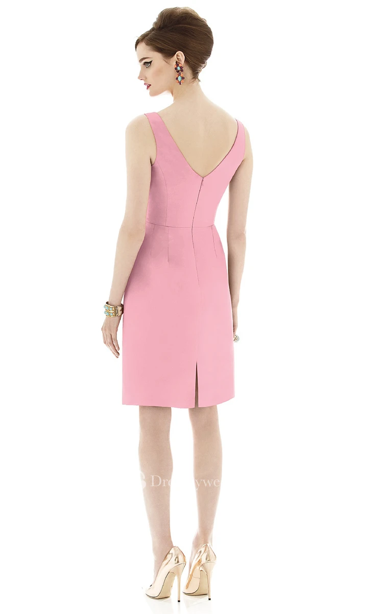 Knee-Length V-Back Satin Dress with V-Neck and Side Ruching