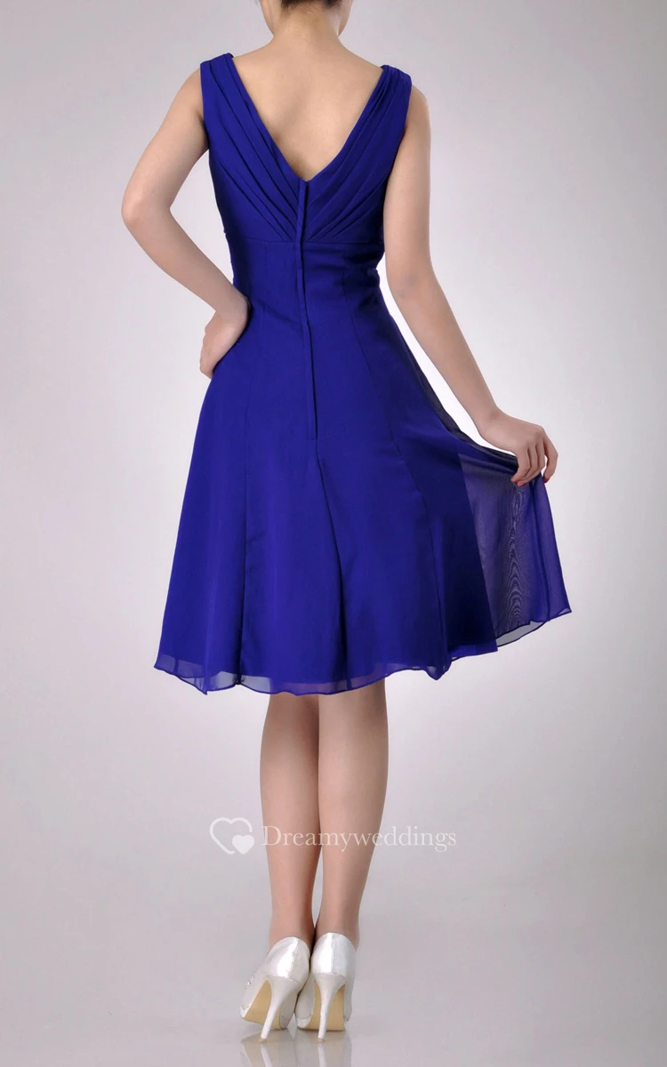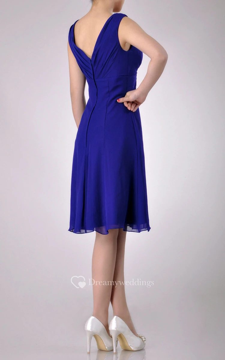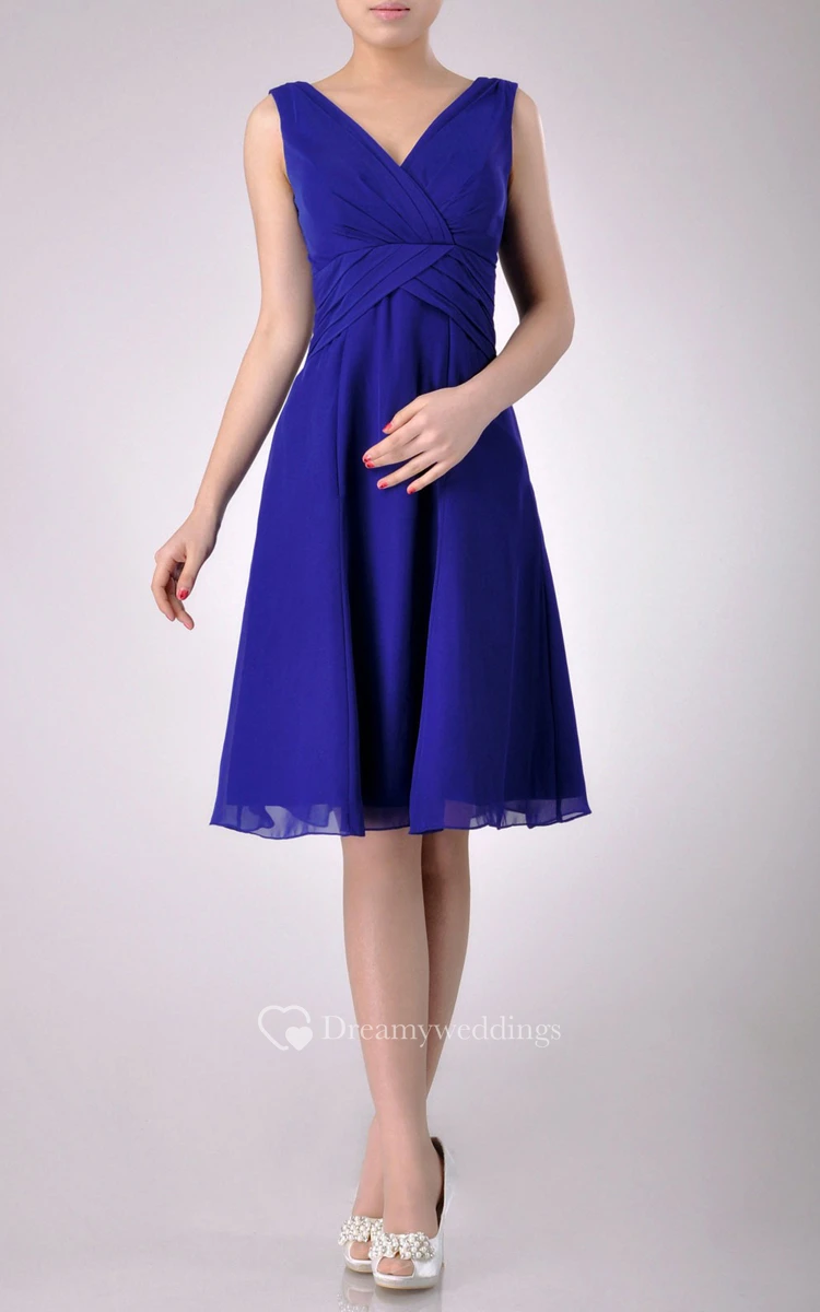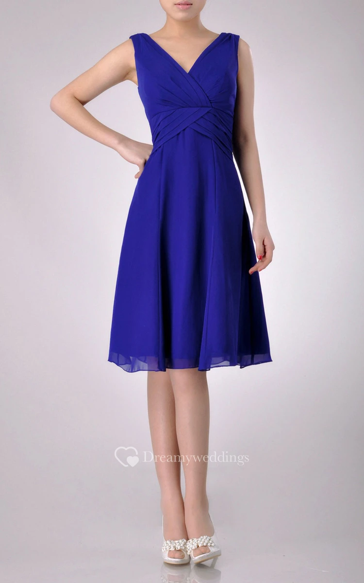 Knee-length V-Neckline A-line Chiffon Bridesmaid Dress With Low-V Back Style