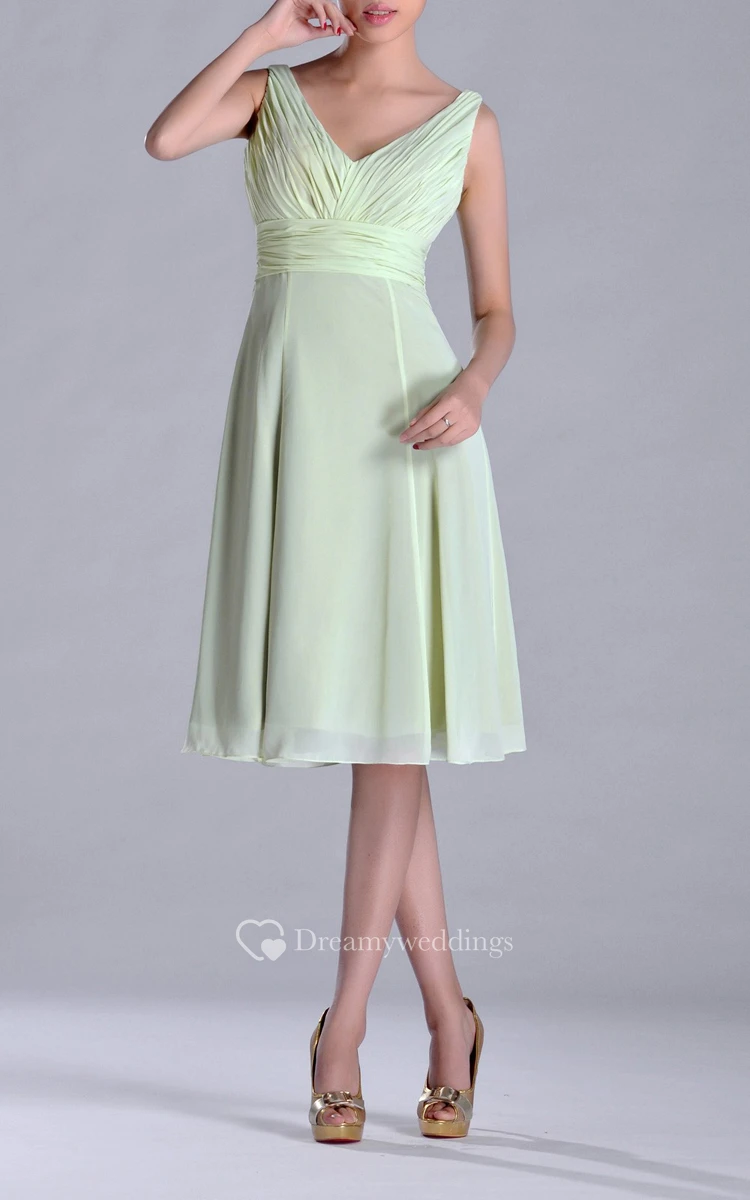 Knee-length V-Neckline Empire Chiffon Bridesmaid Dress With Deep-V Back Style
