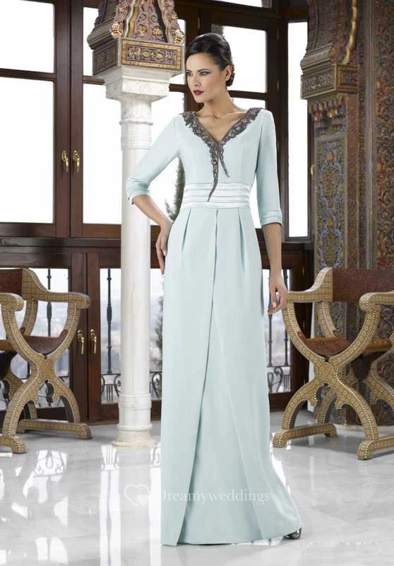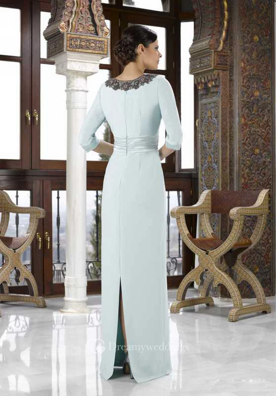 Lace 3-4 Sleeve V-Neck Chiffon Mother Of The Bride Dress With Split Back