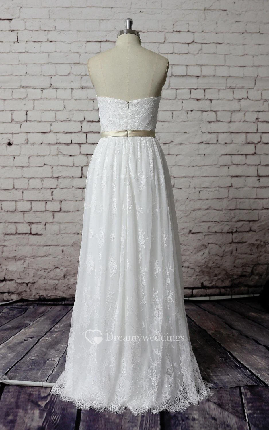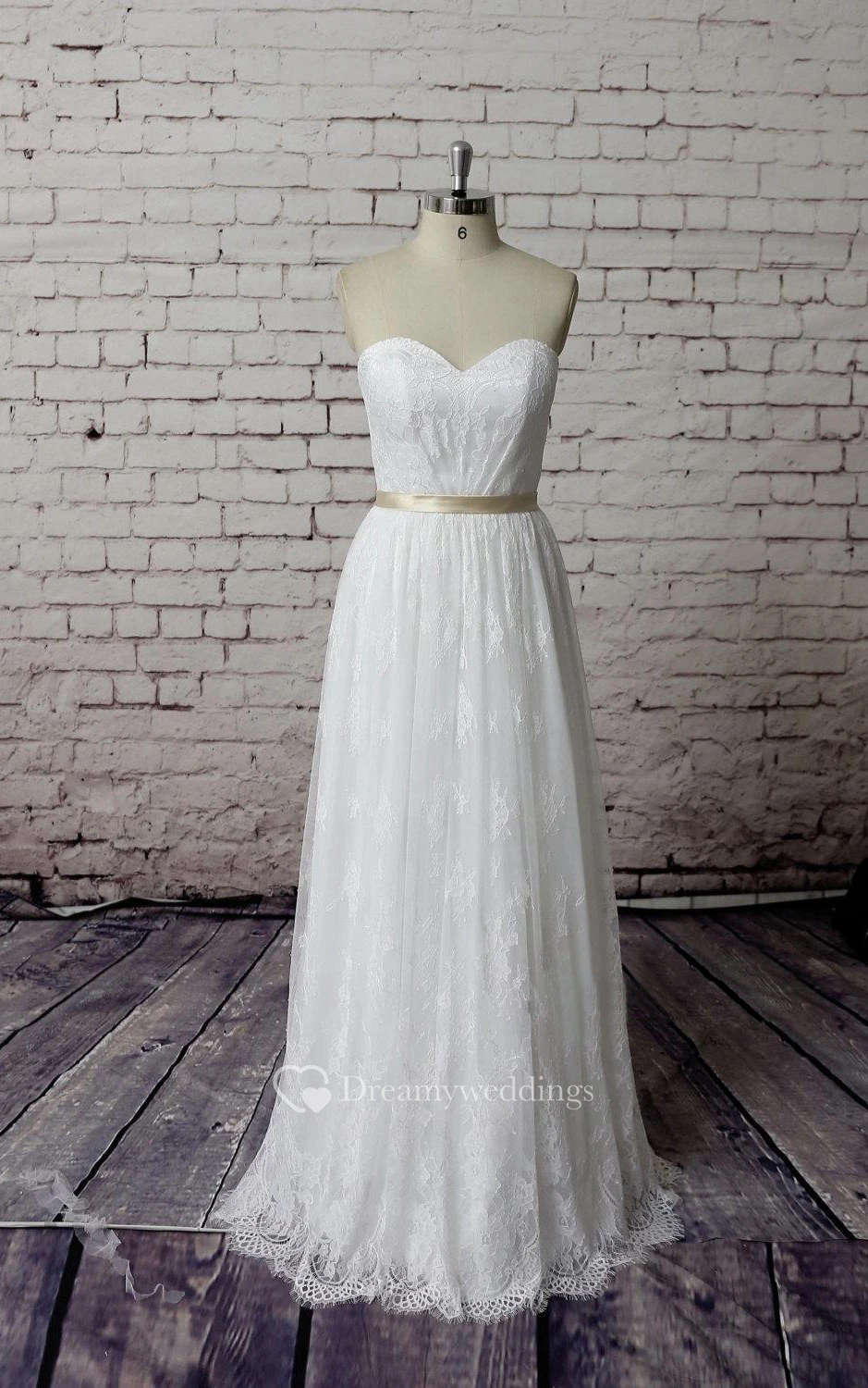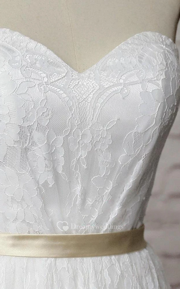 Lace A-Line Sweetheart Long Dress With Satin Waistbelt